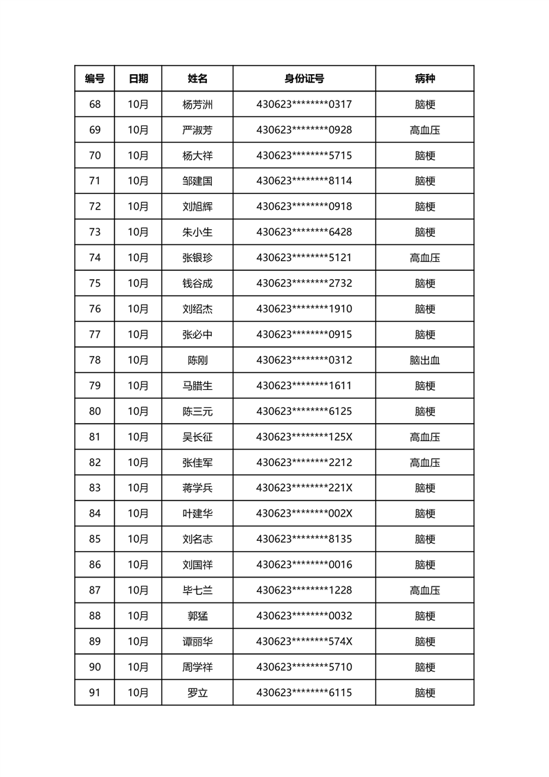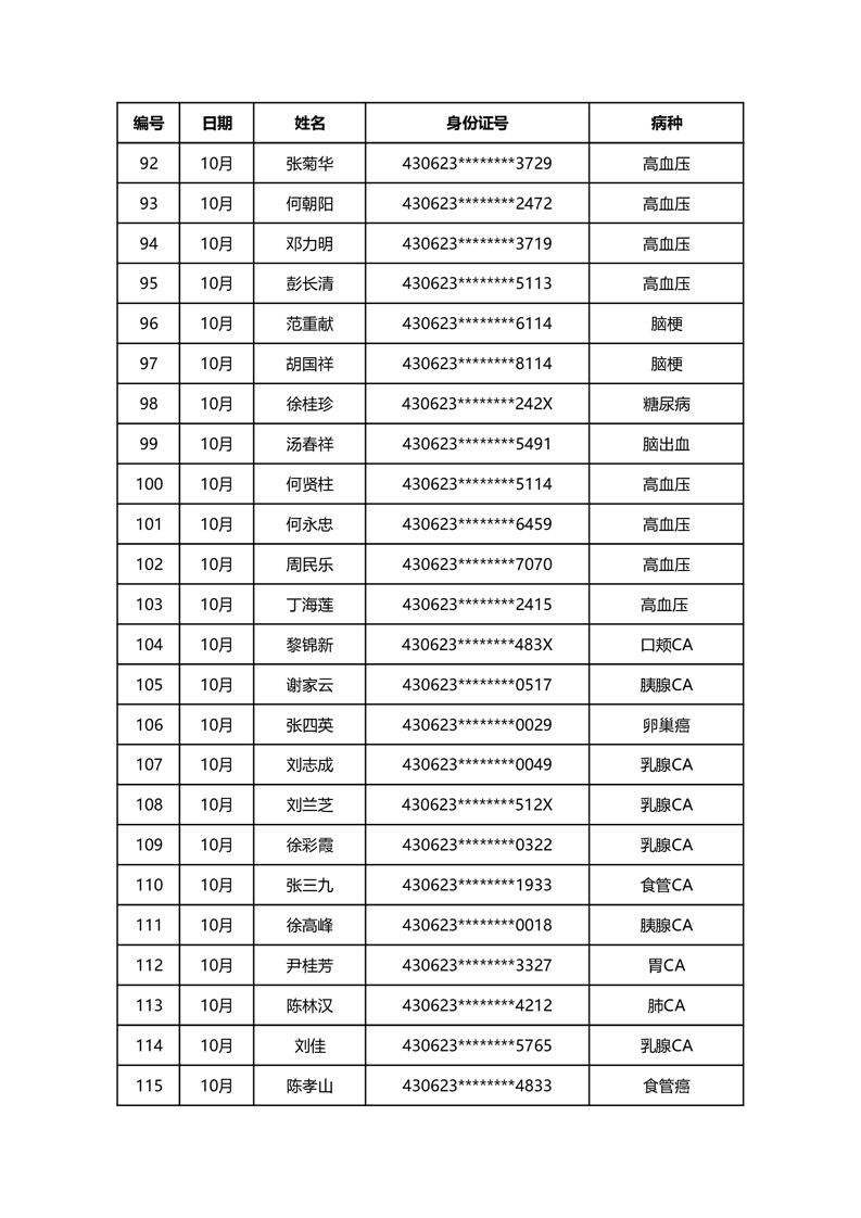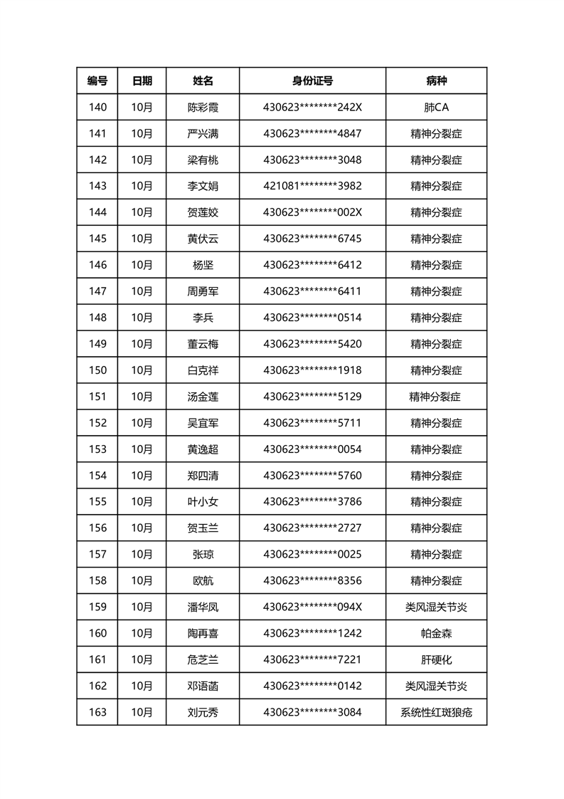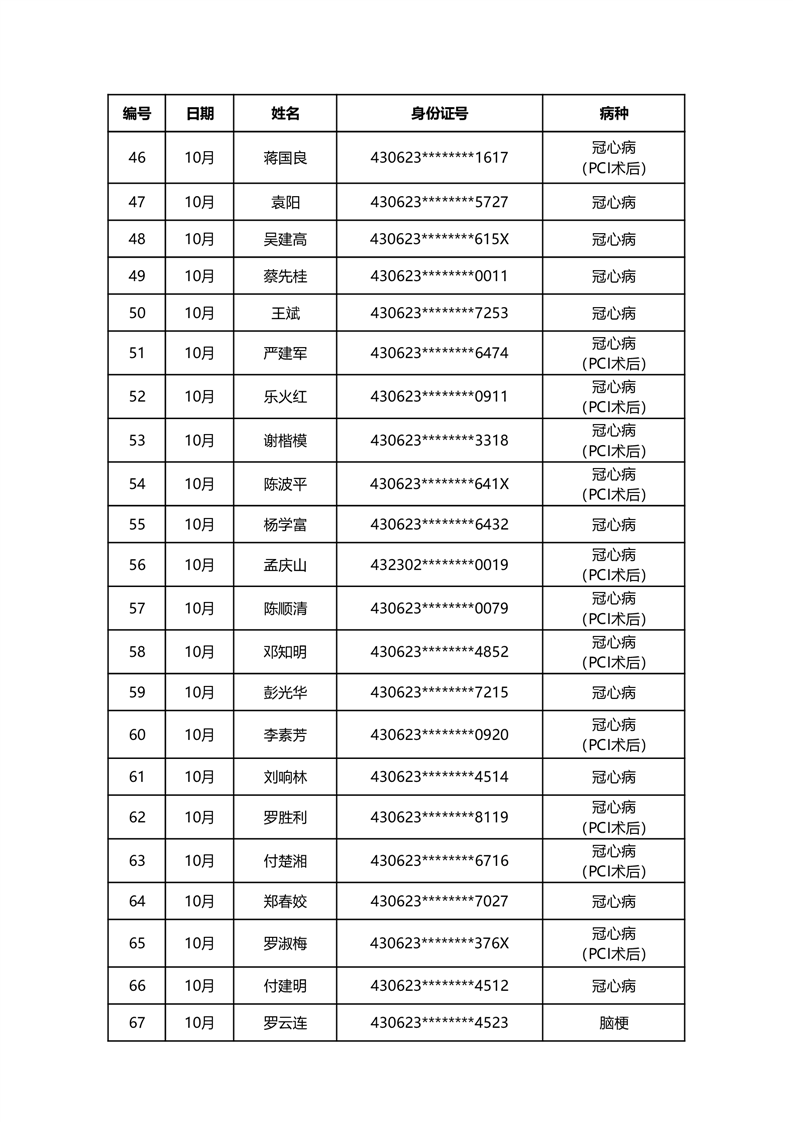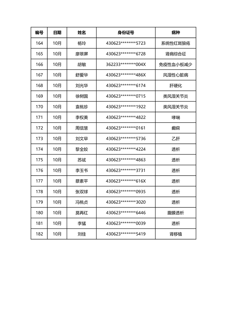 华容县医疗保障事务中心2023年10月份办理特殊病种门诊人员名单公示