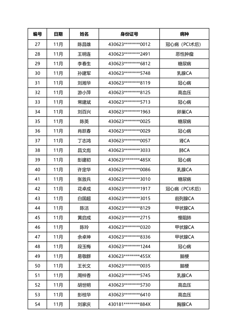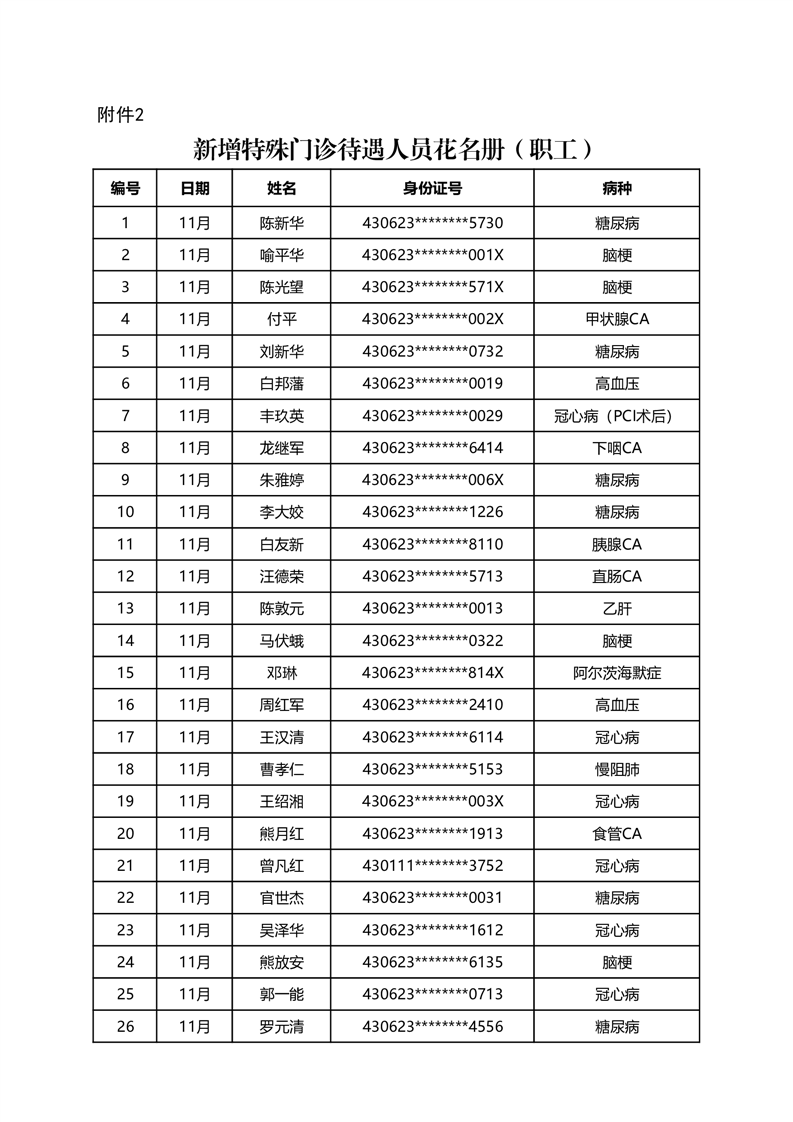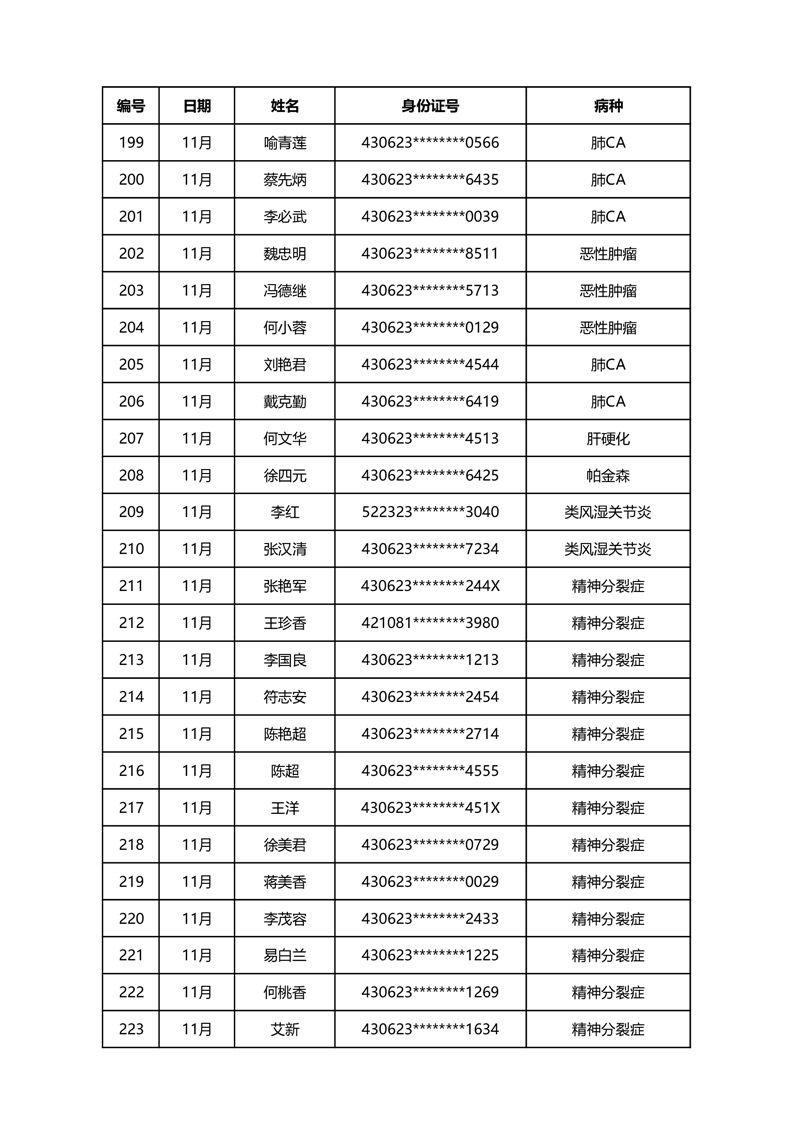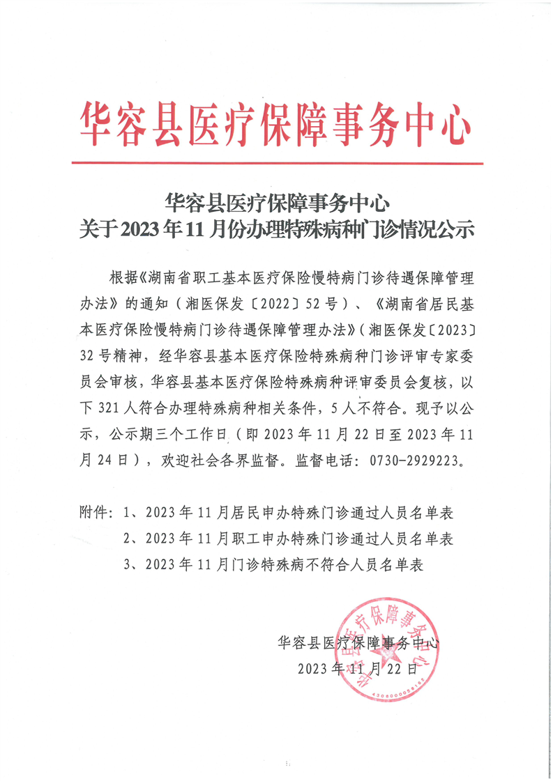 华容县医疗保障事务中心2023年11月份办理特殊病种门诊人员名单公示
