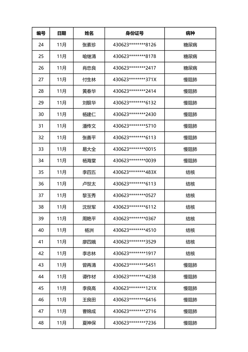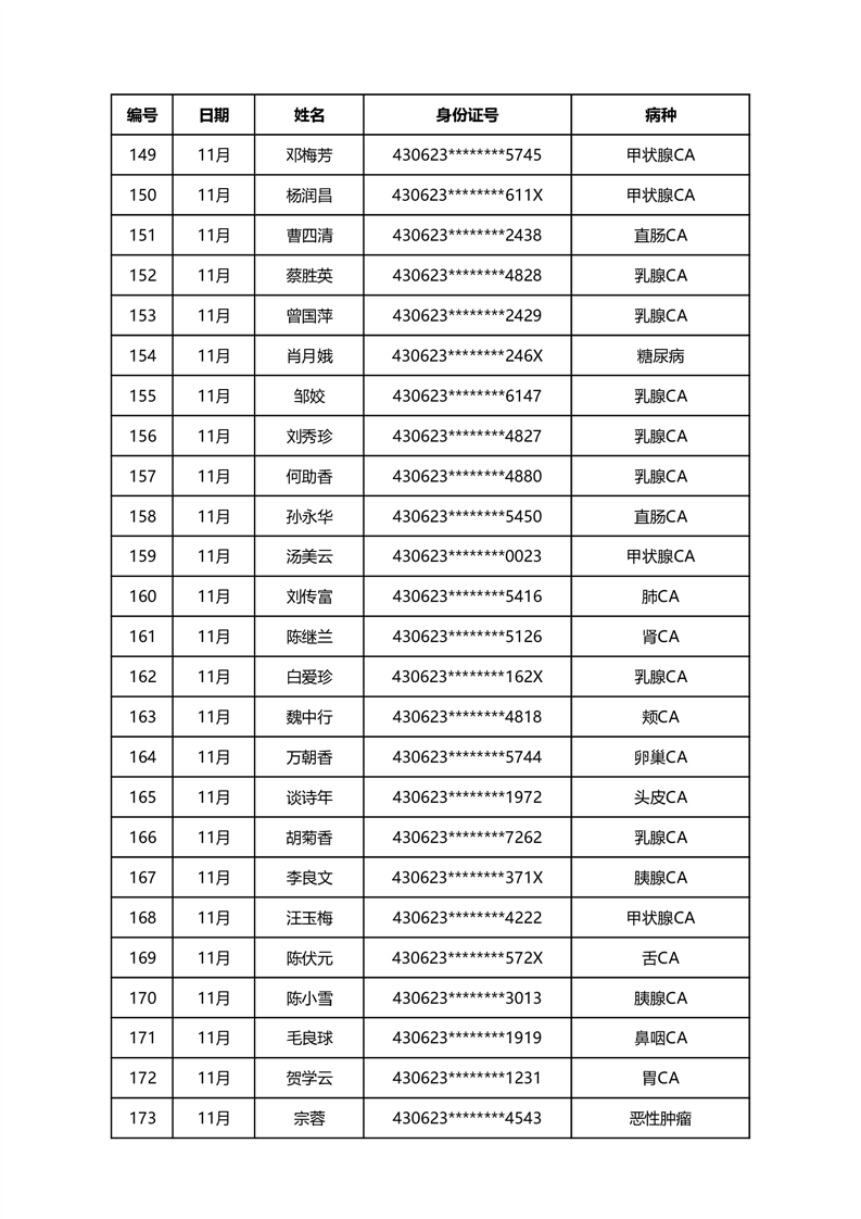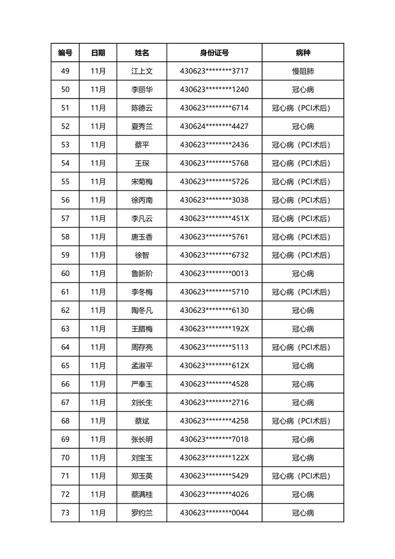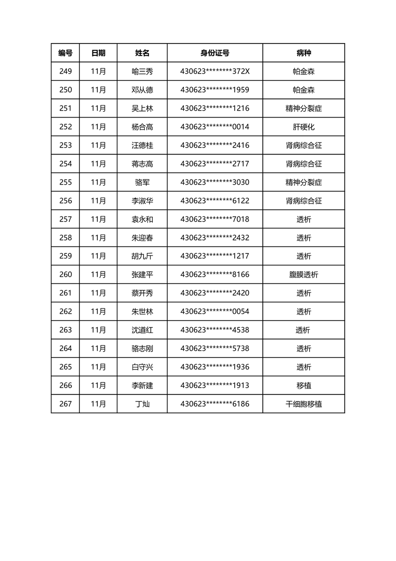 华容县医疗保障事务中心2023年11月份办理特殊病种门诊人员名单公示