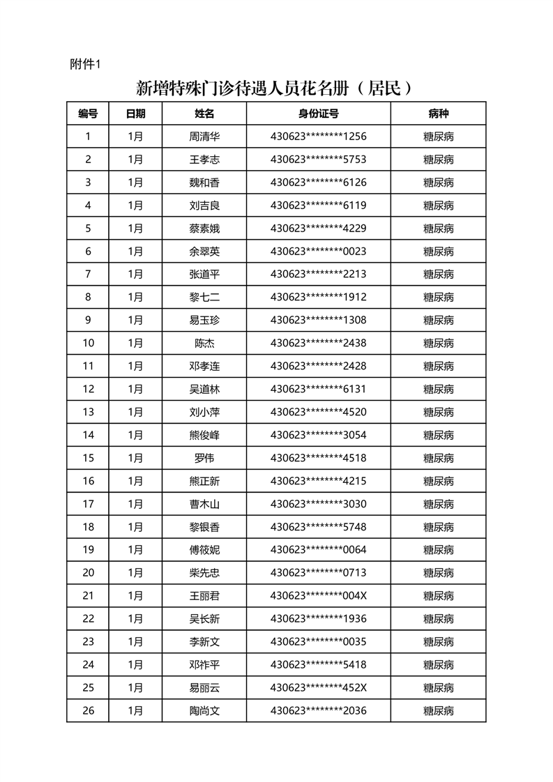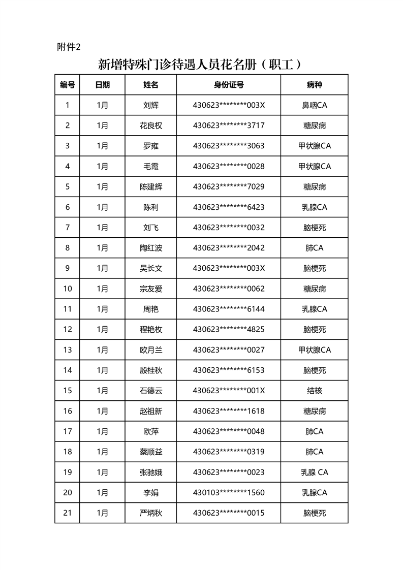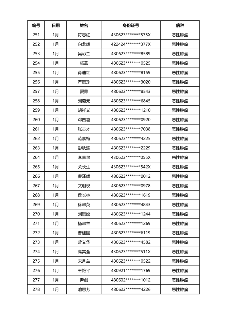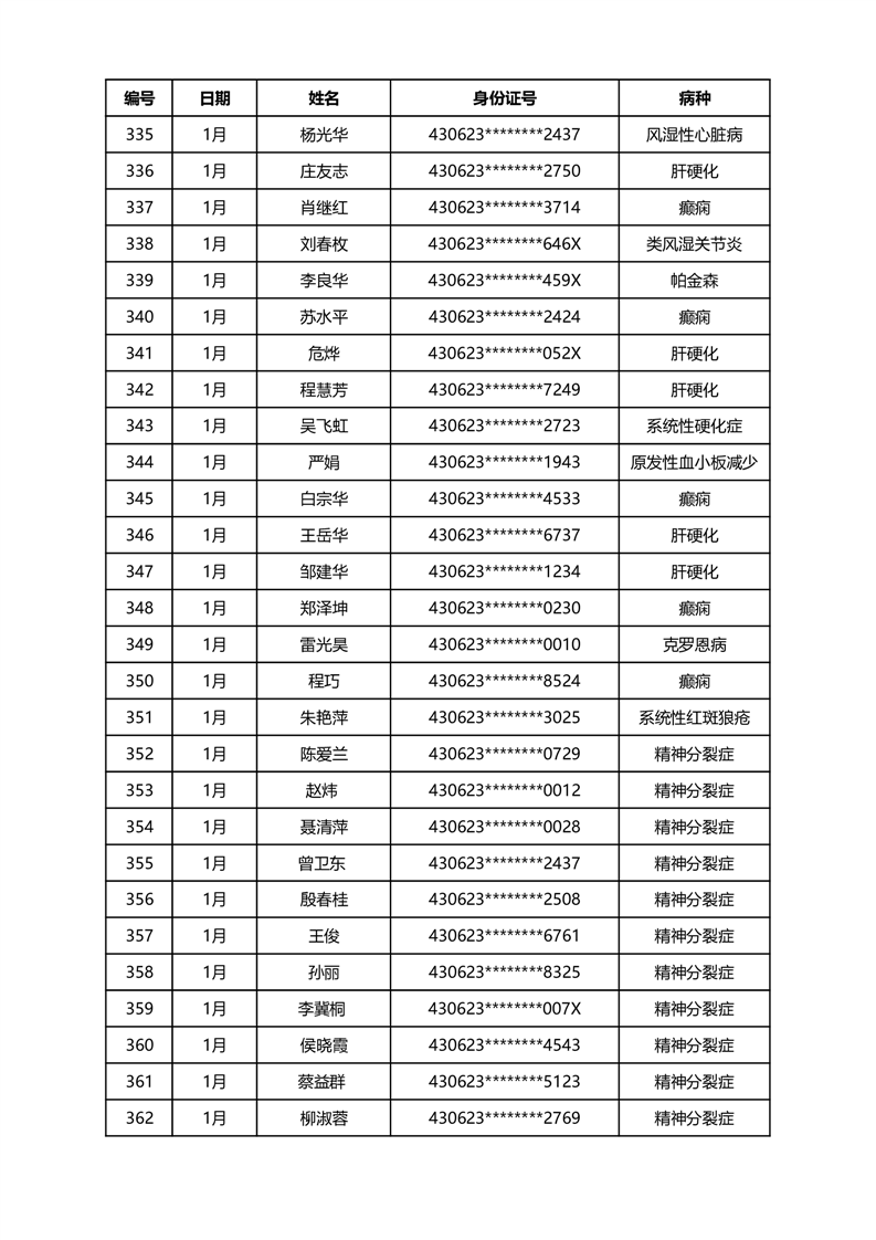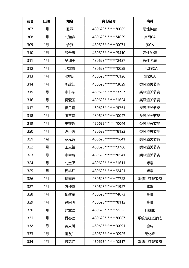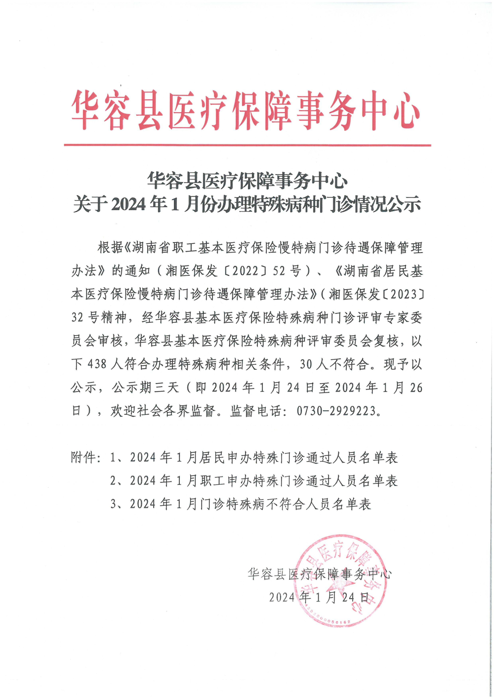 华容县医疗保障事务中心2024年1月份办理特殊病种门诊人员名单公示