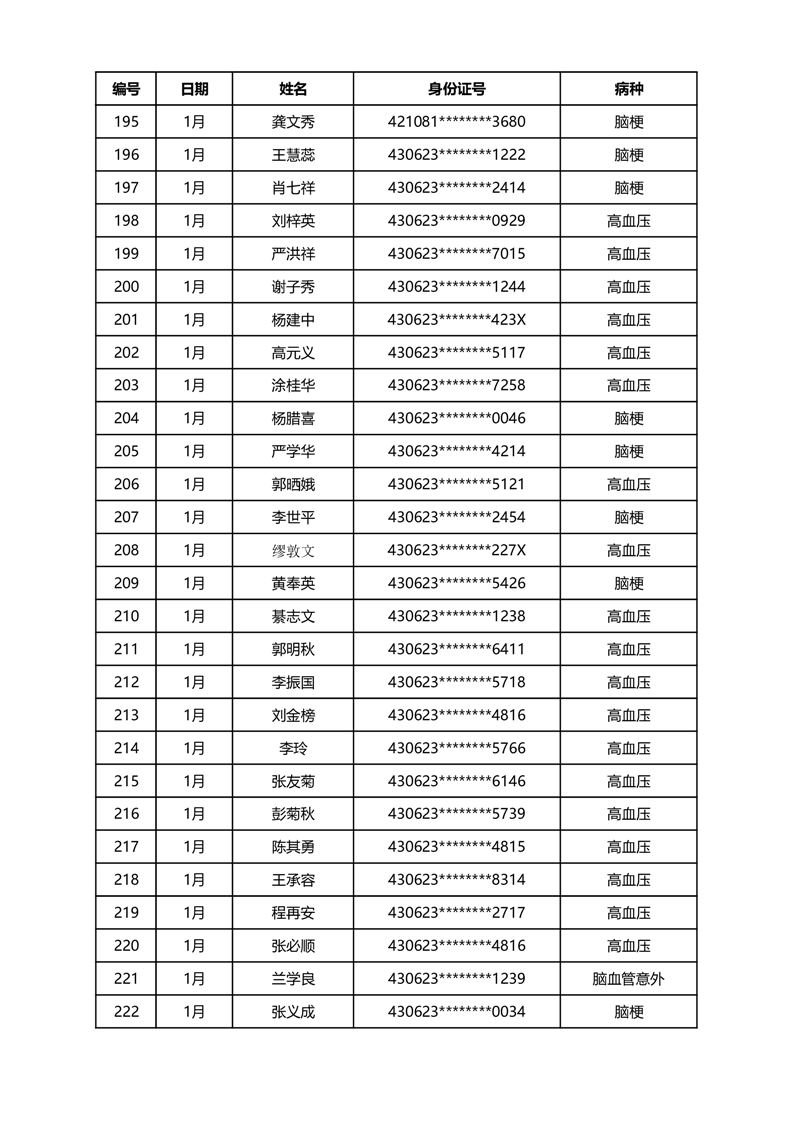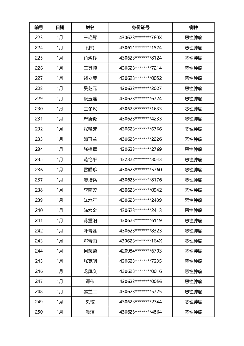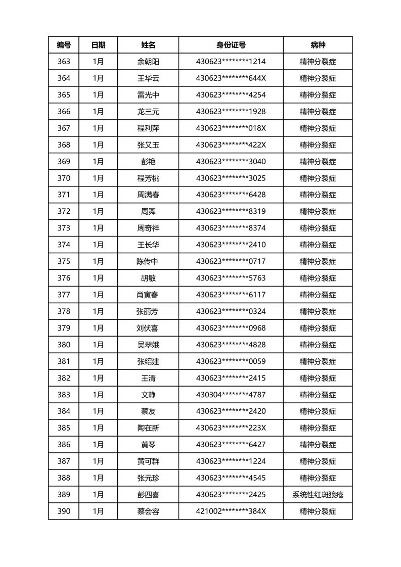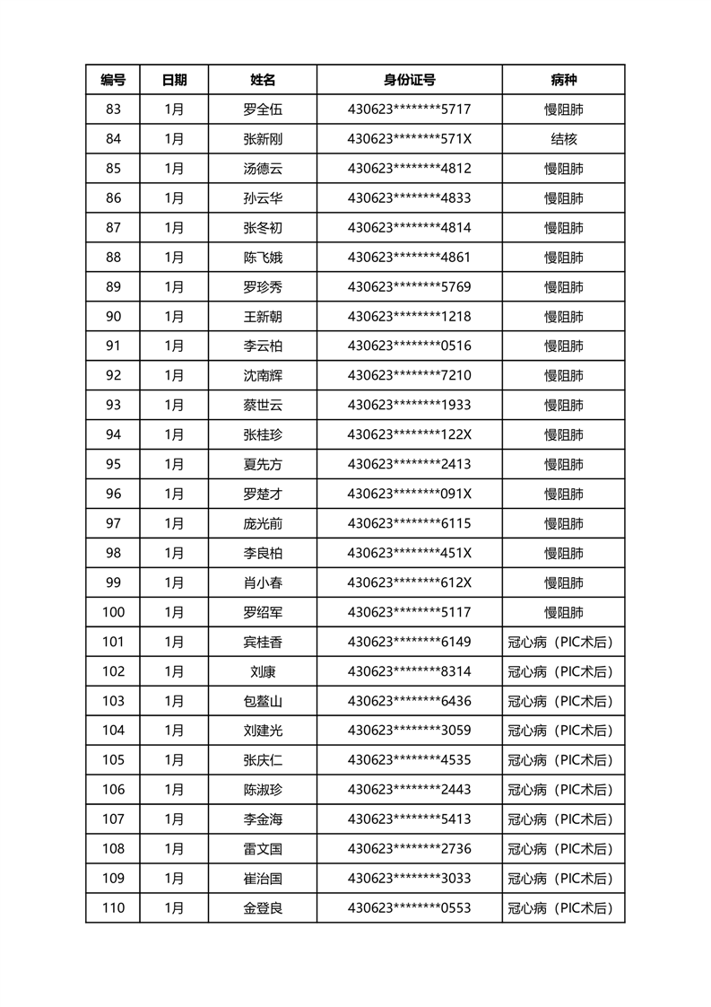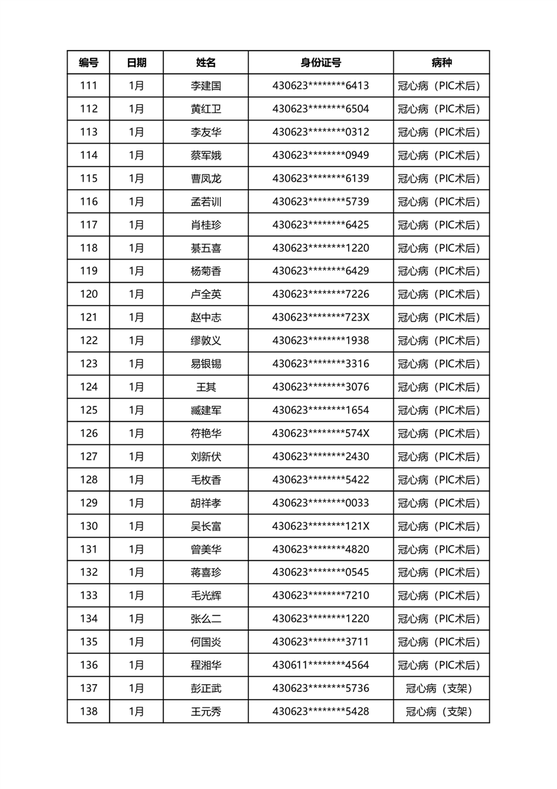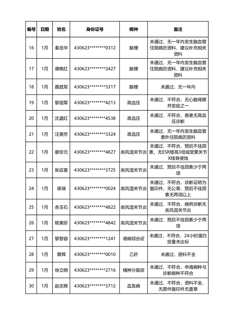 华容县医疗保障事务中心2024年1月份办理特殊病种门诊人员名单公示