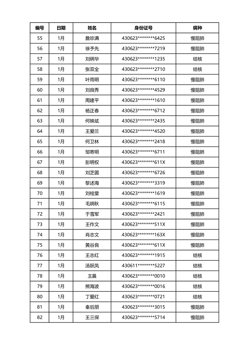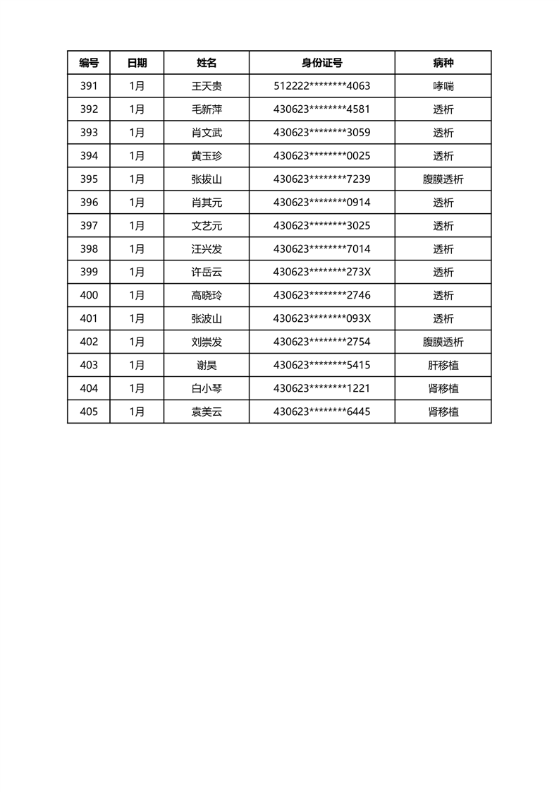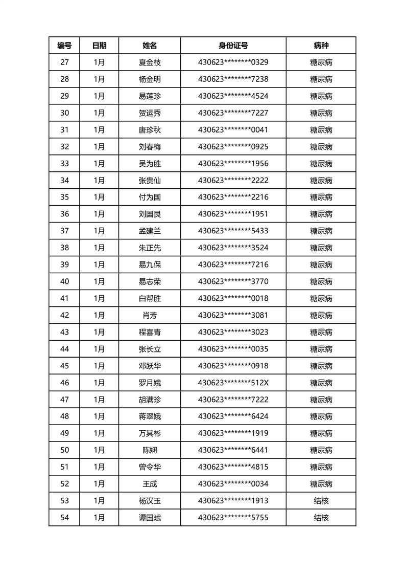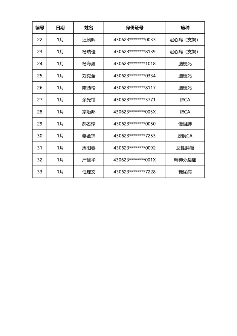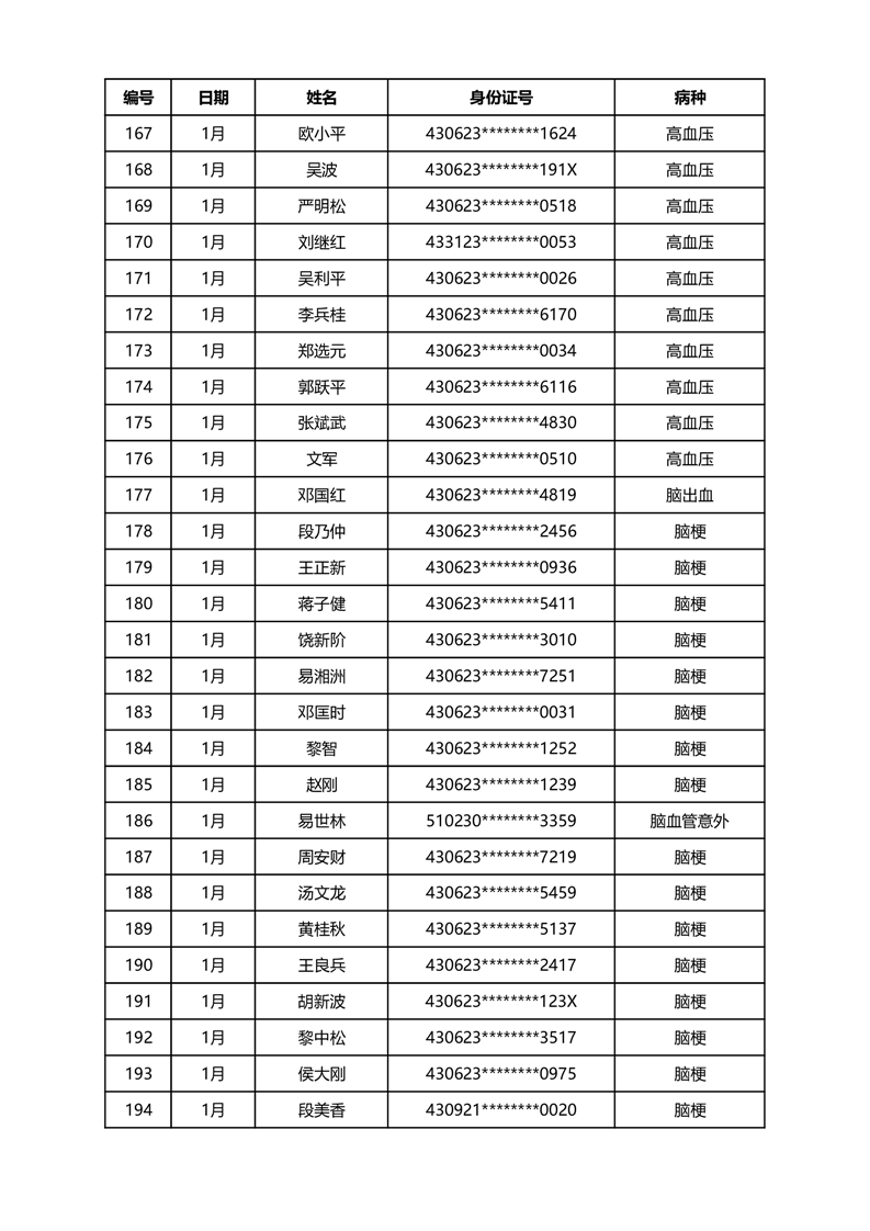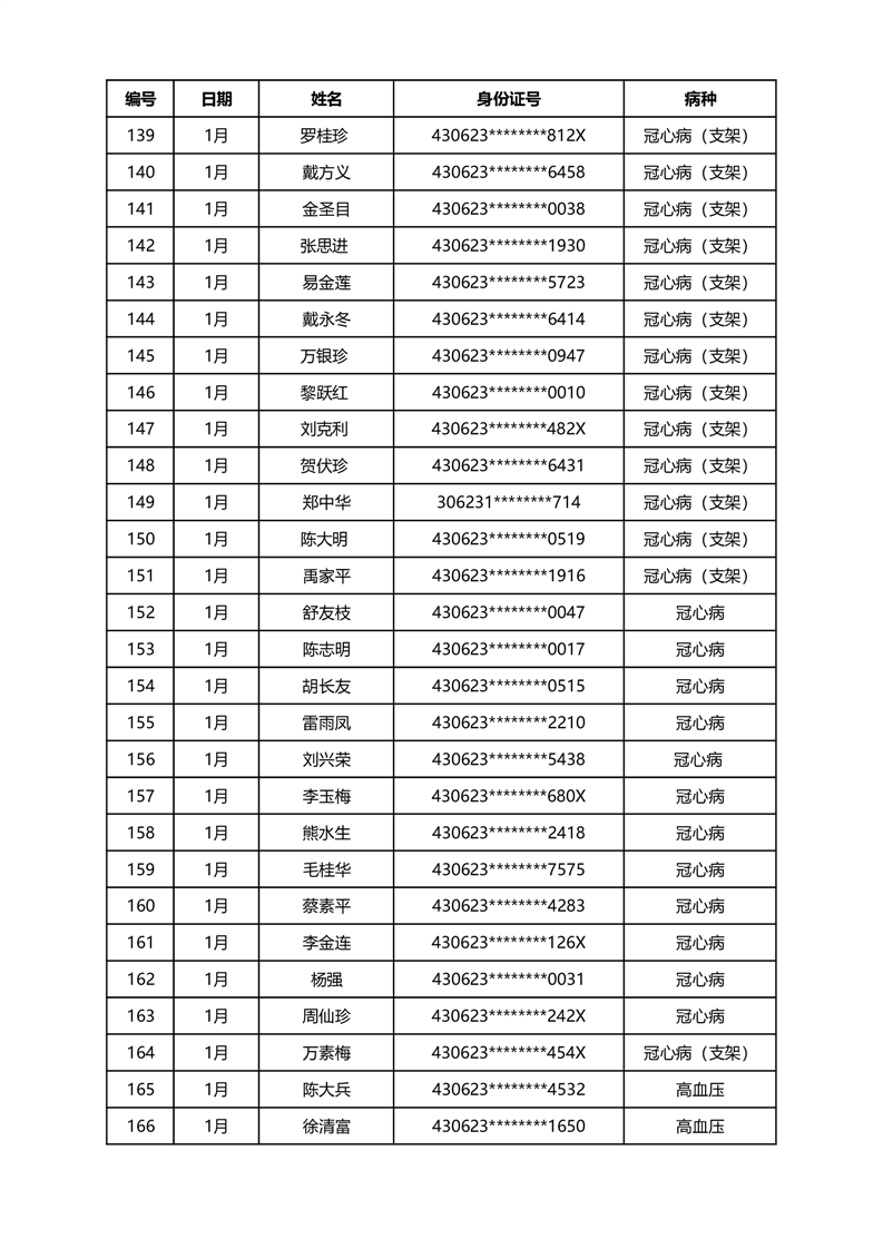 华容县医疗保障事务中心2024年1月份办理特殊病种门诊人员名单公示