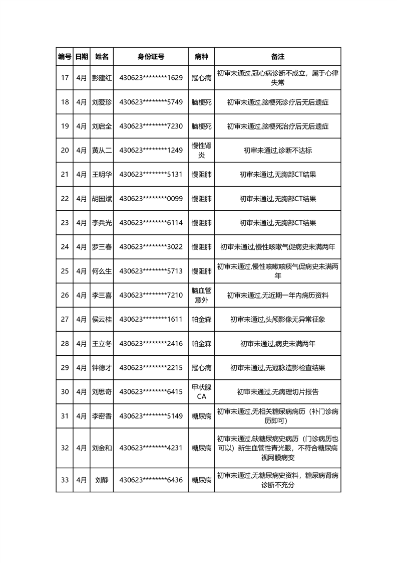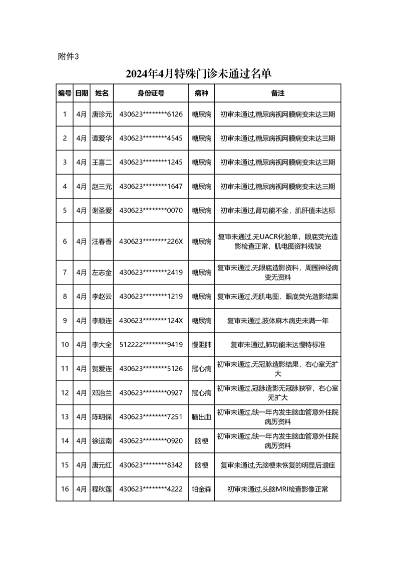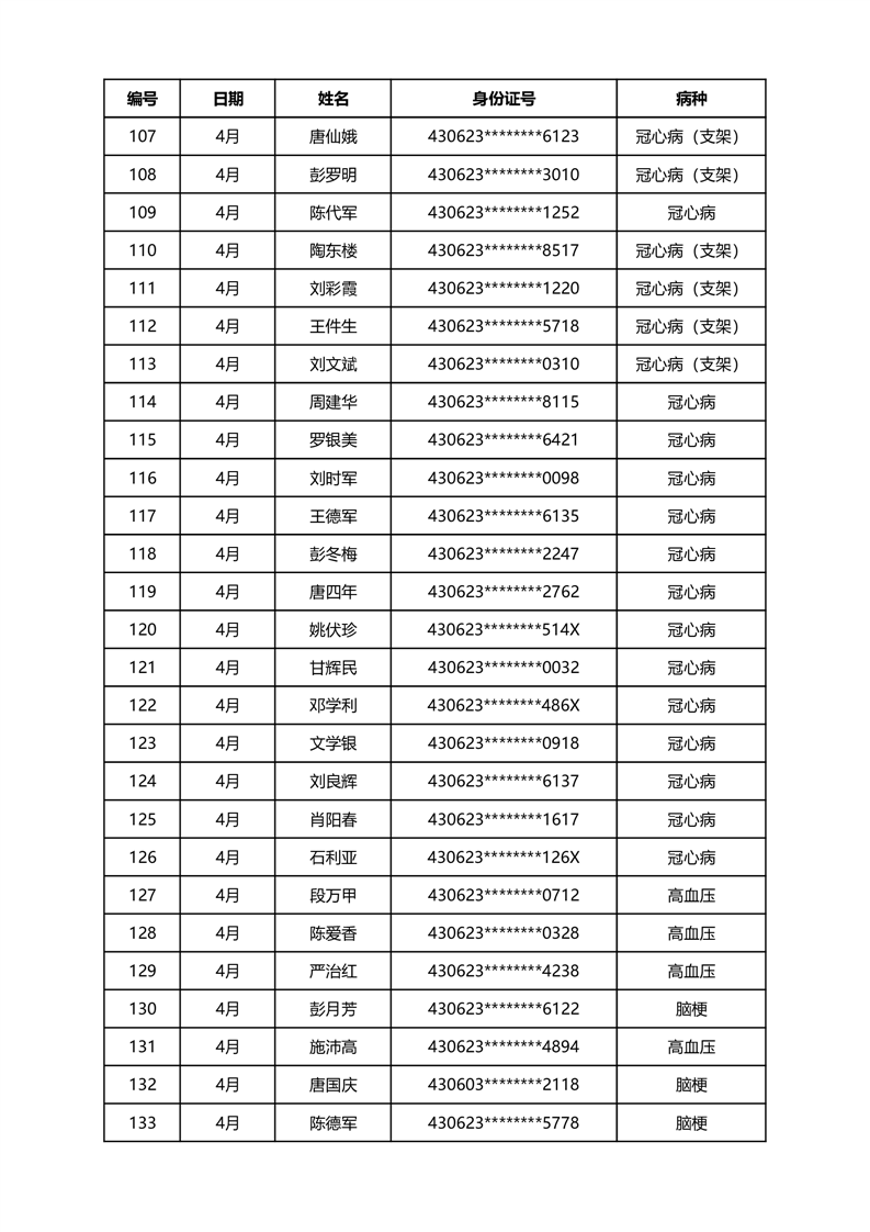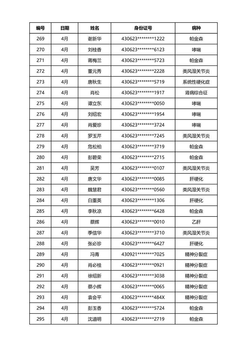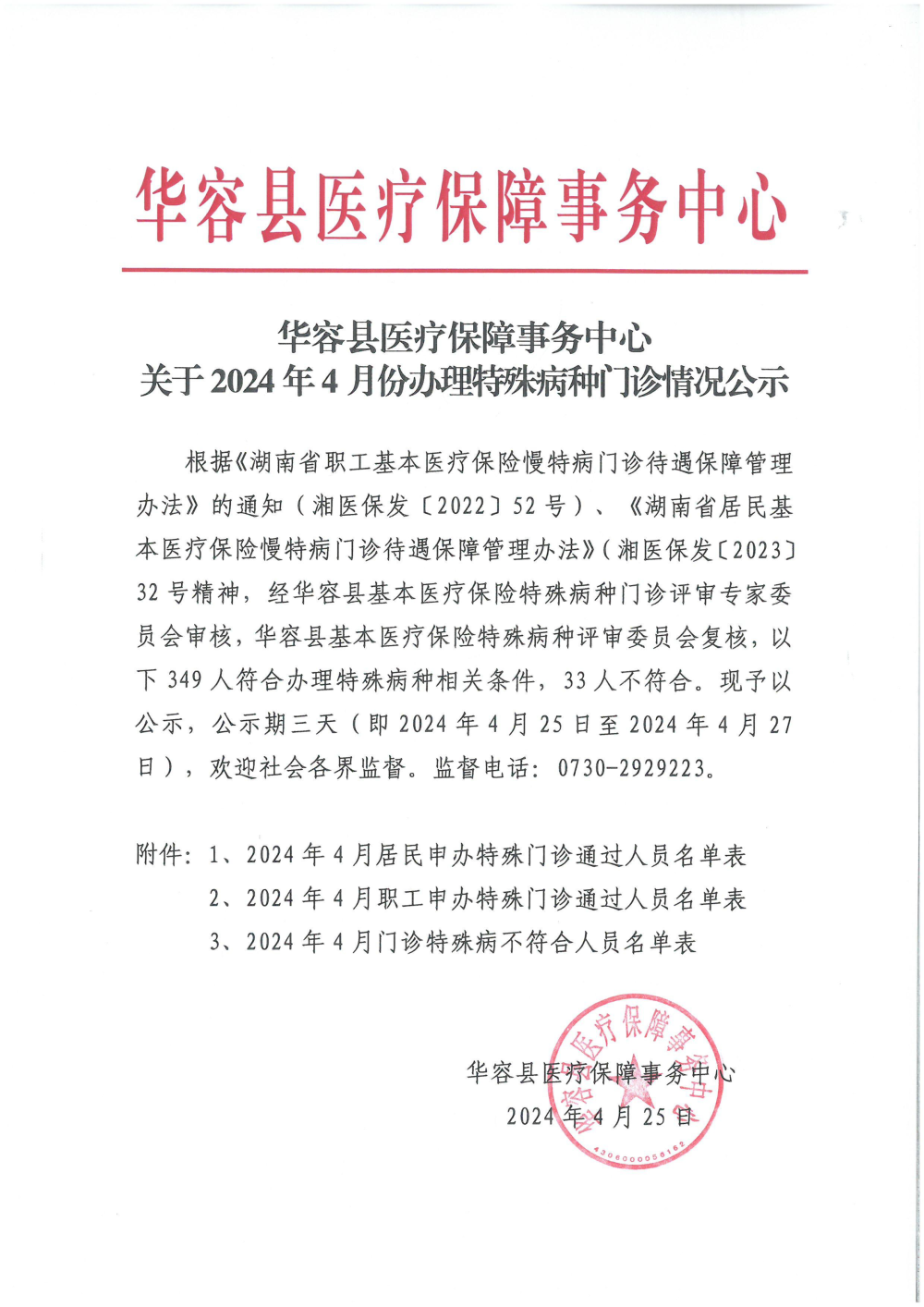 华容县医疗保障事务中心2024年4月份办理特殊病种门诊人员名单公示