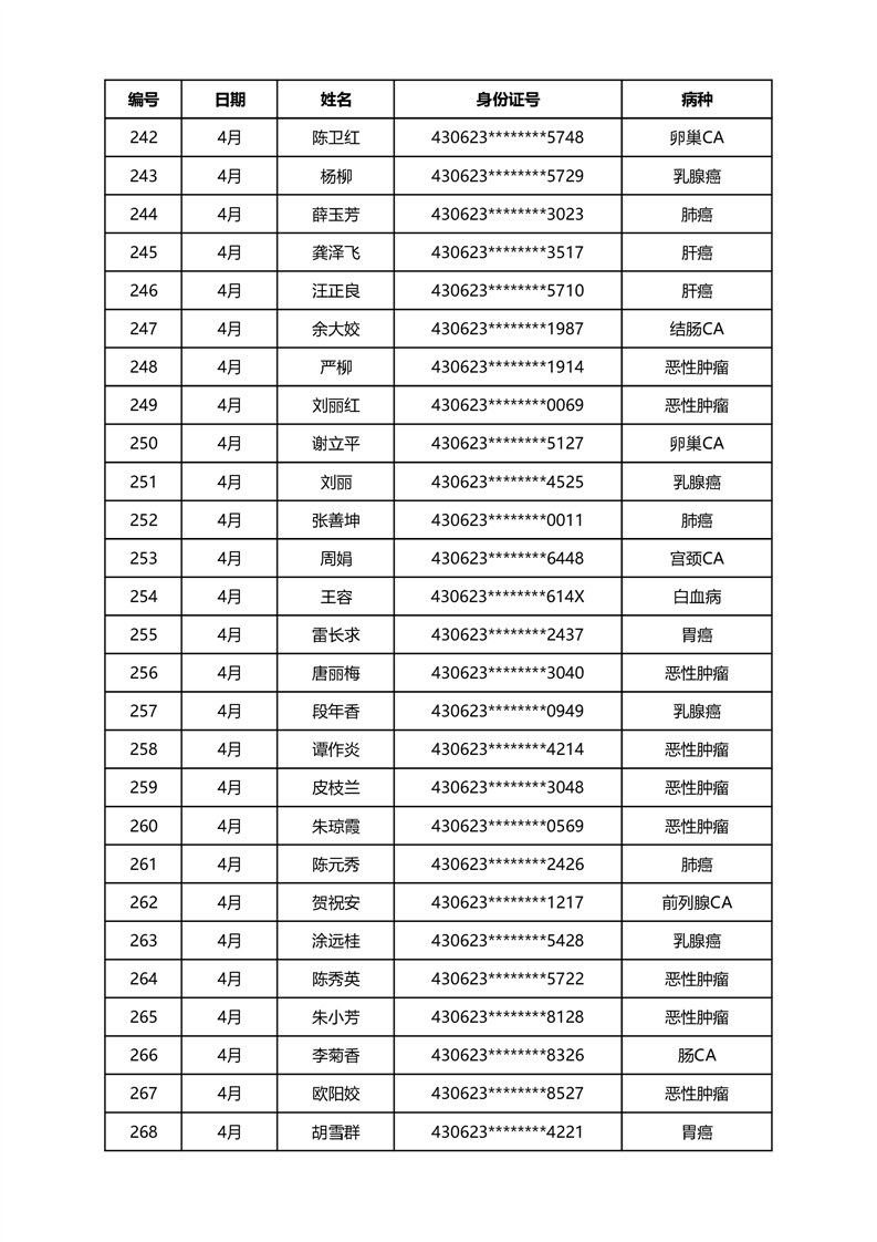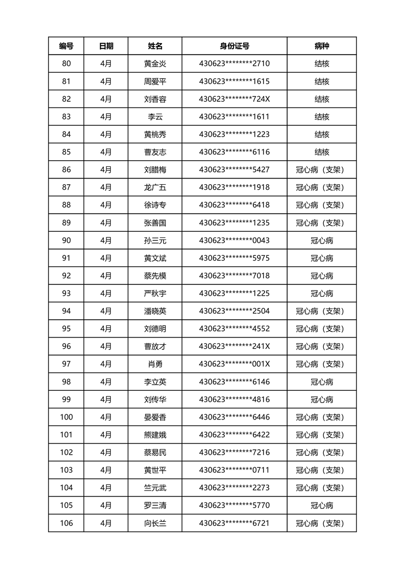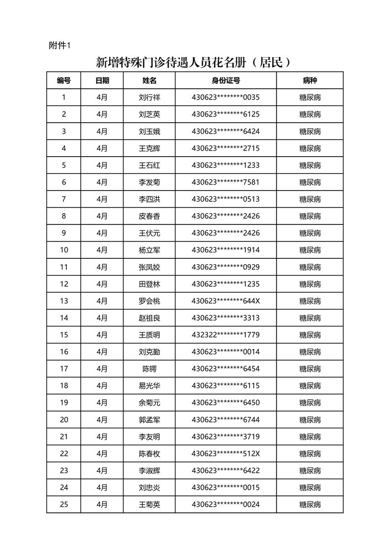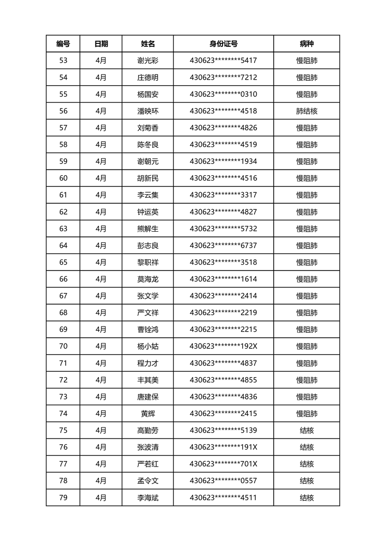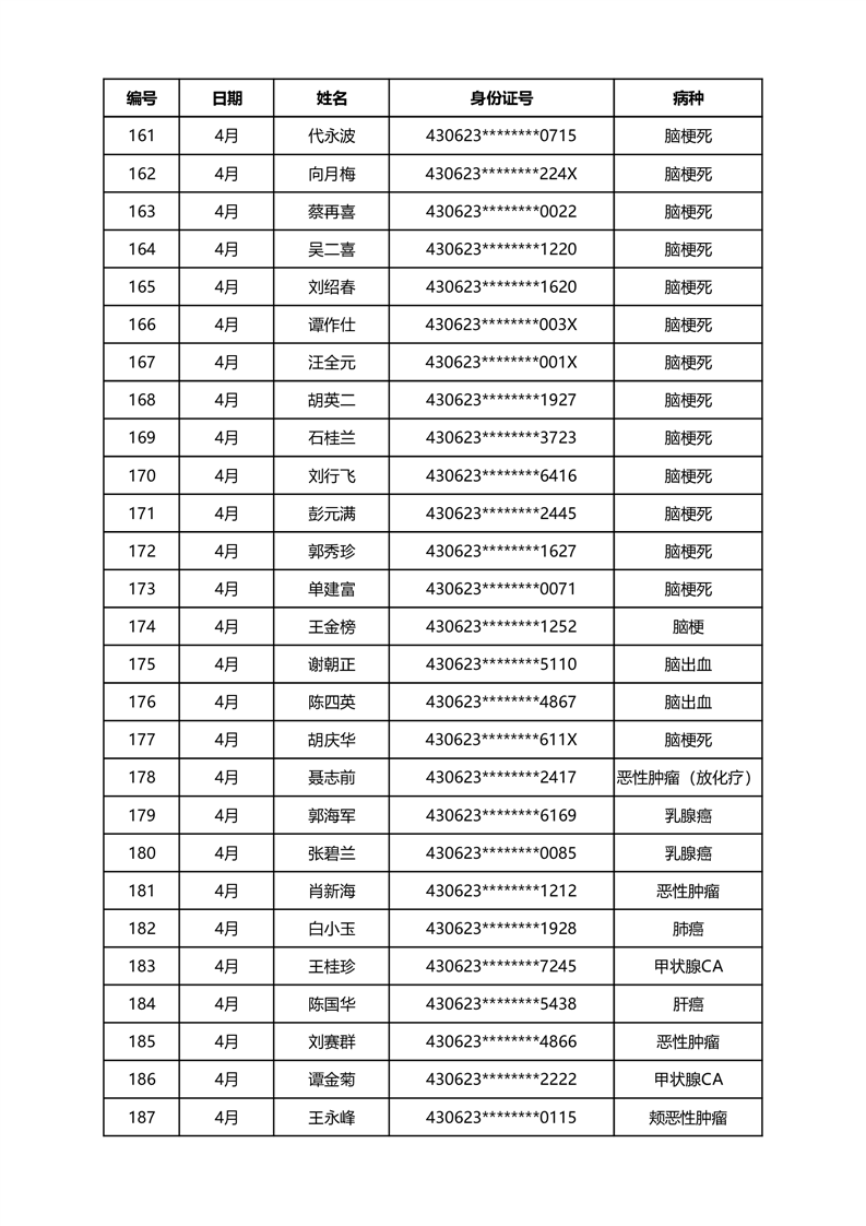 华容县医疗保障事务中心2024年4月份办理特殊病种门诊人员名单公示