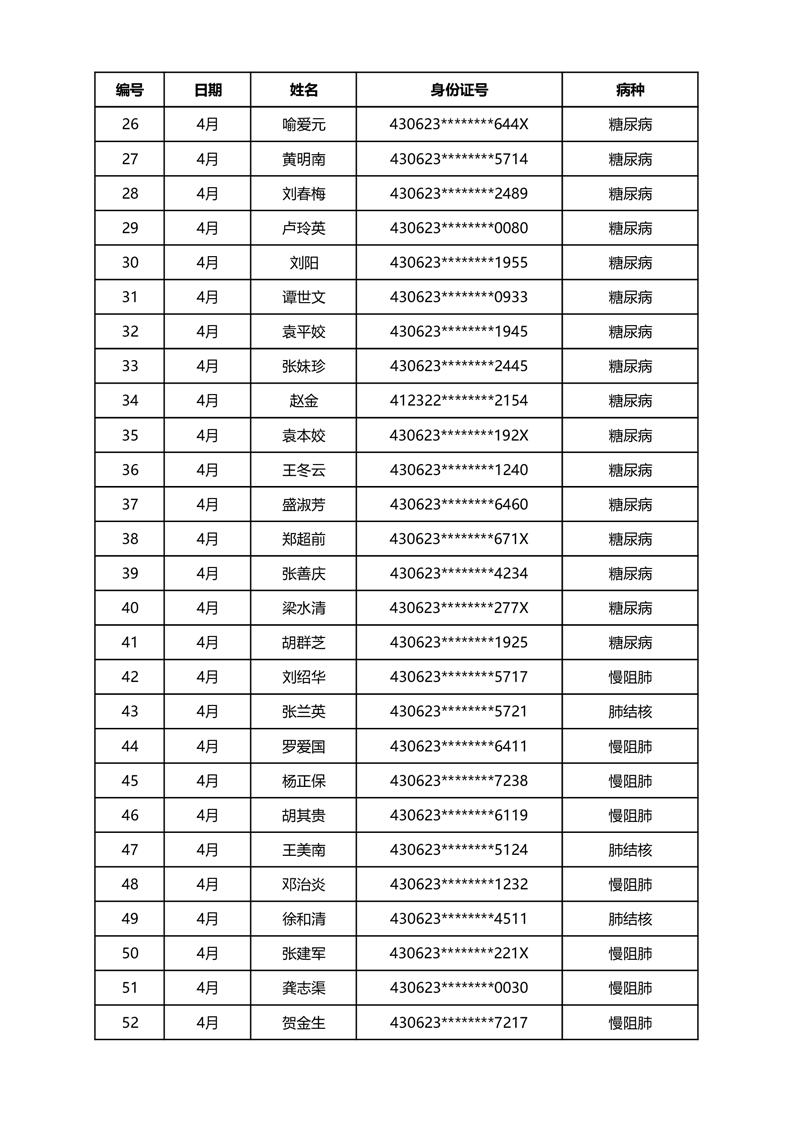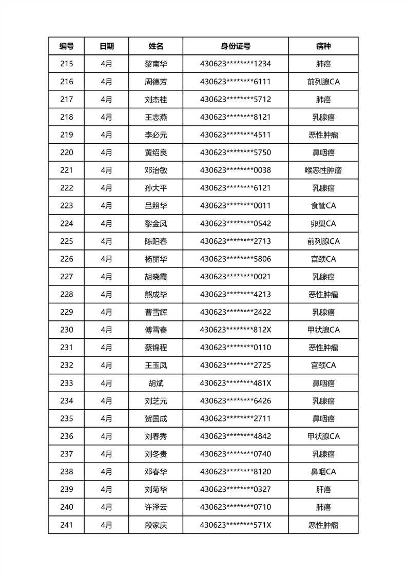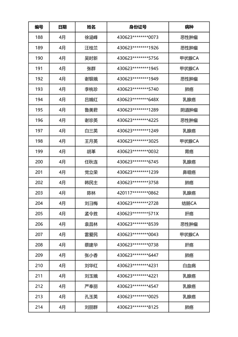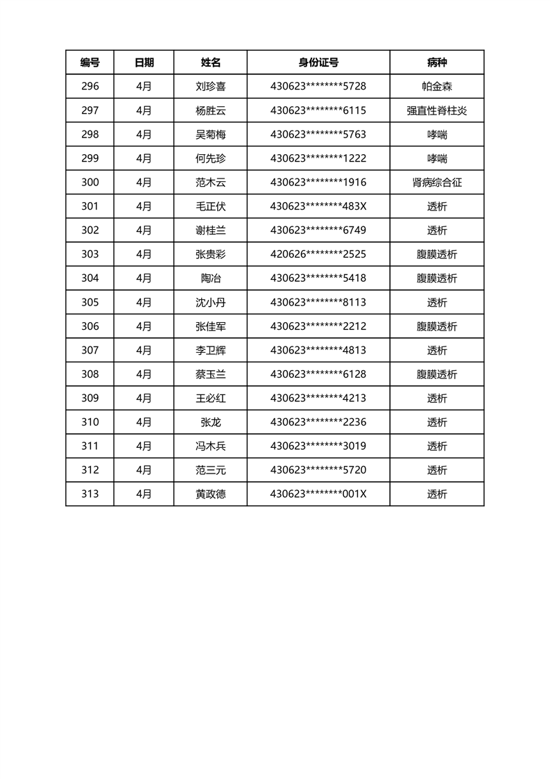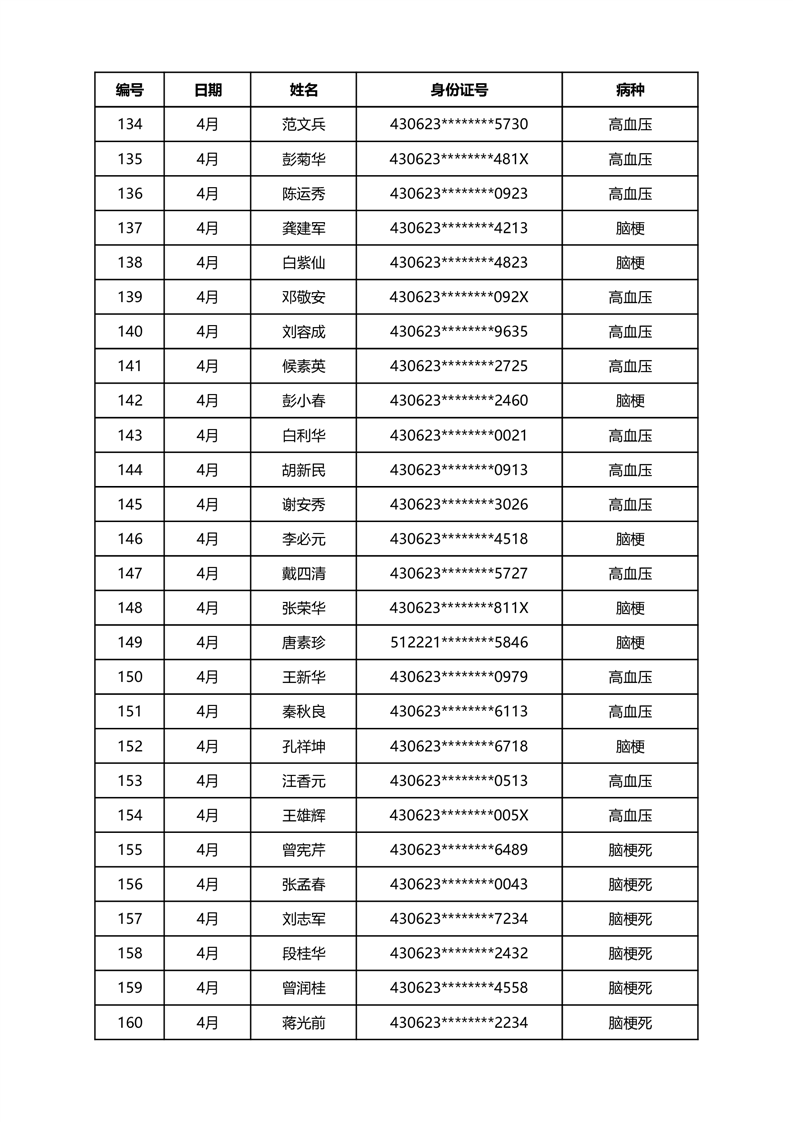 华容县医疗保障事务中心2024年4月份办理特殊病种门诊人员名单公示