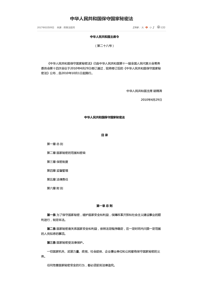 中华人民共和国保守国家秘密法