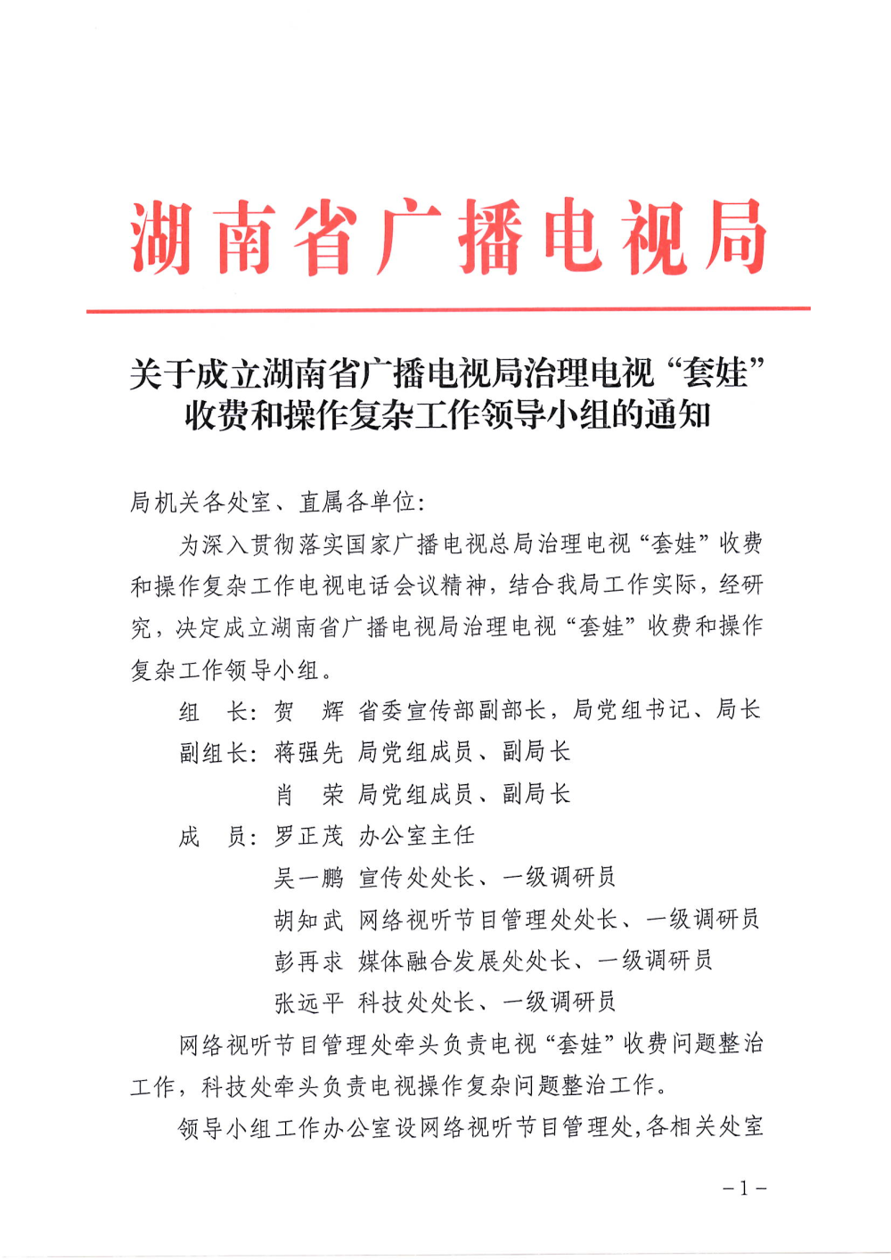 关于成立湖南省广播电视局治理电视“套娃”收费和操作复杂工作领导小组的通知