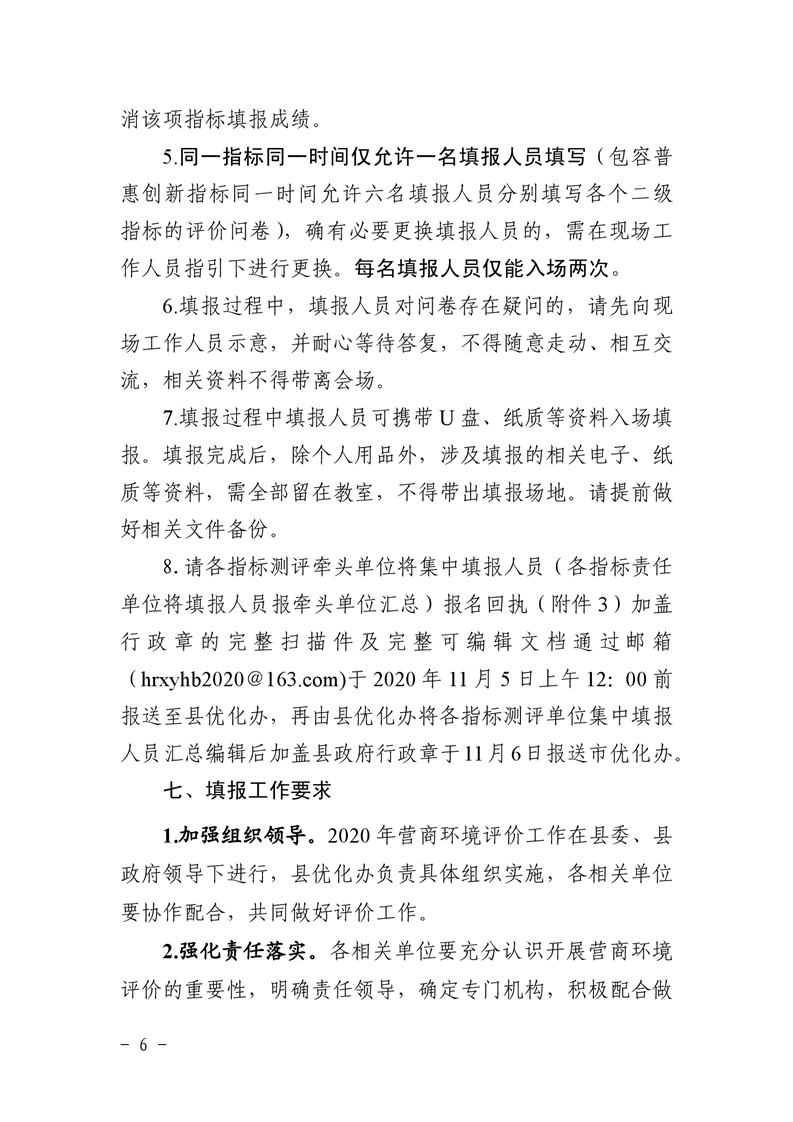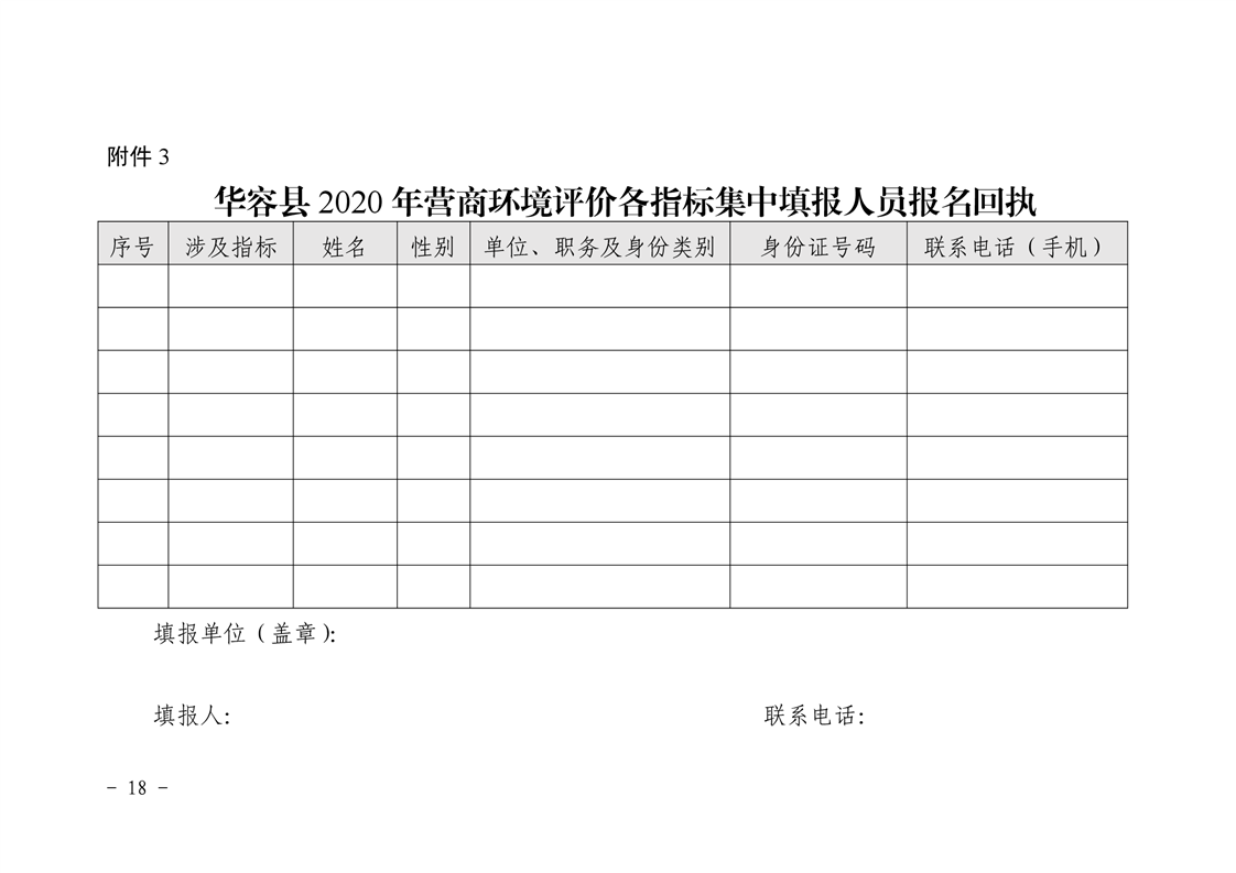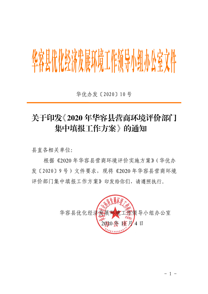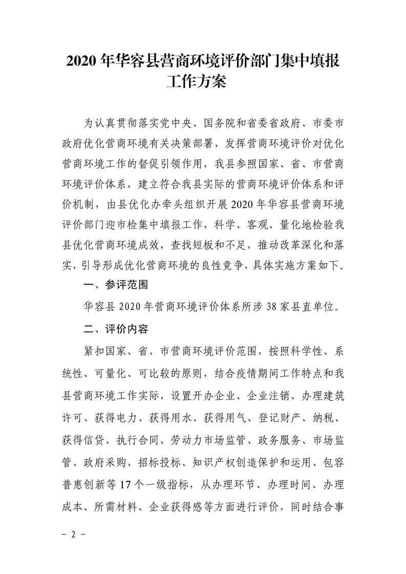 关于印发《2020年华容县营商环境评价部门集中填报工作方案》的通知