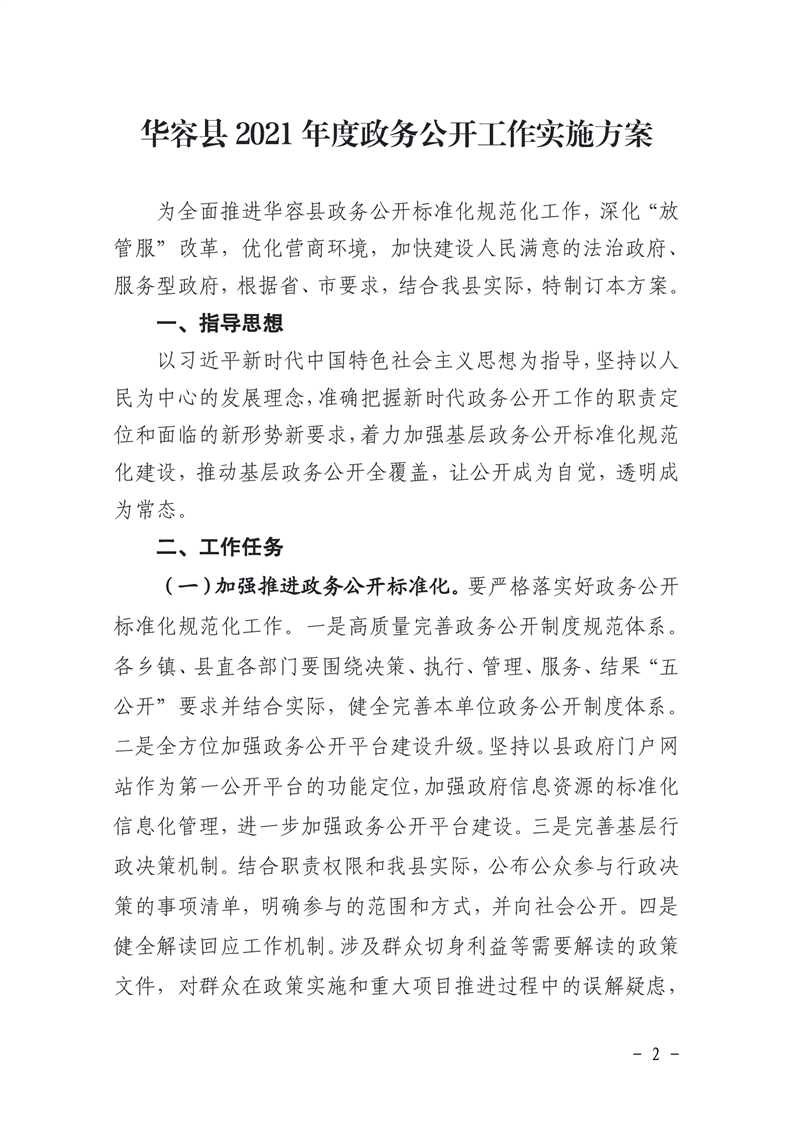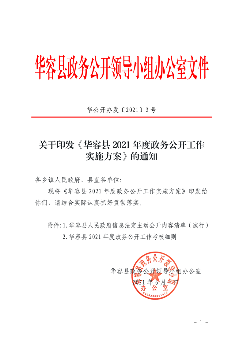 华公开办发〔2021〕3号 关于印发《华容县2021年度政务公开工作实施方案》的通知