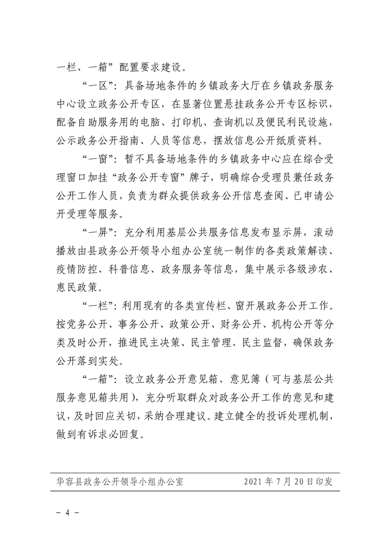 关于印发《华容县2021年政务公开专区建设实施方案》的通知华公开办发〔2021〕 4 号