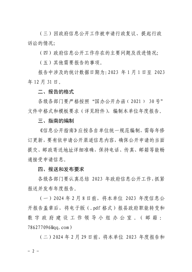 关于报送 2023年政府信息公开工作年度报告和2024年度信息公开指南的通知