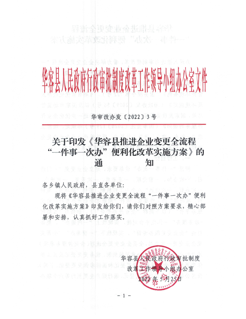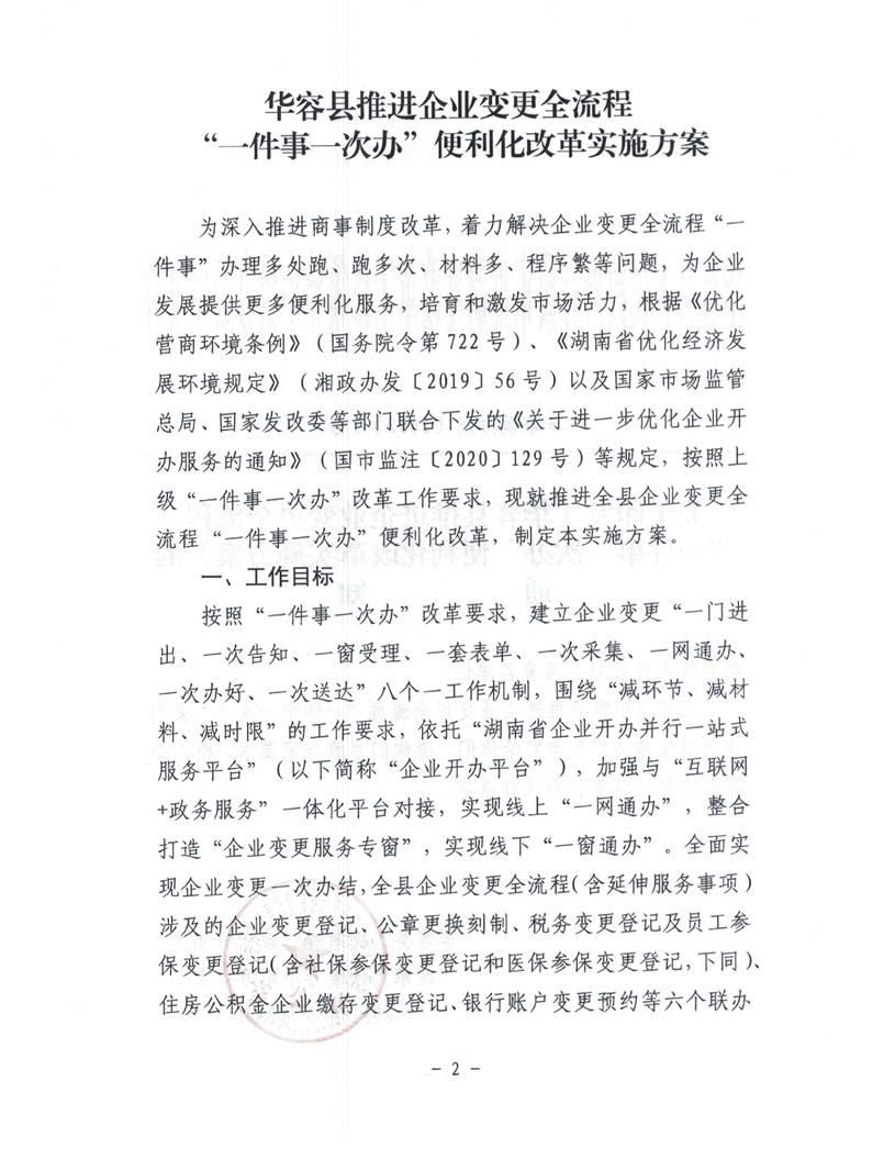 华容县推进企业变更全流程“一件事一次办”便利化改革实施方案