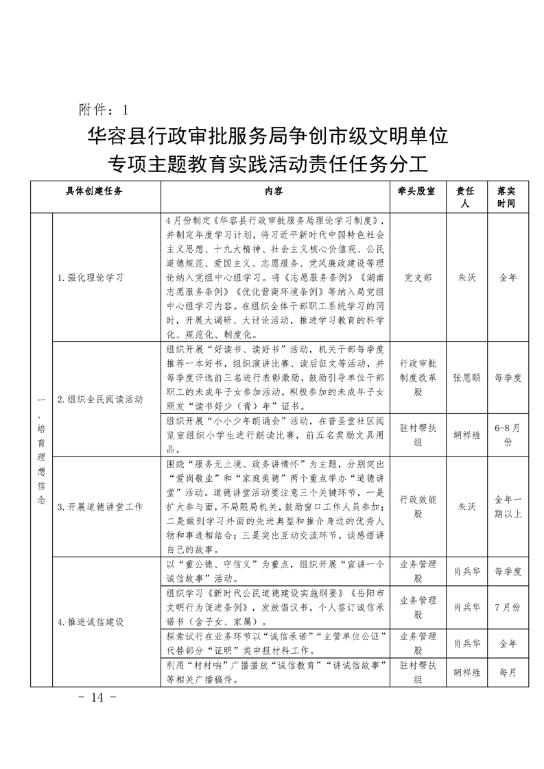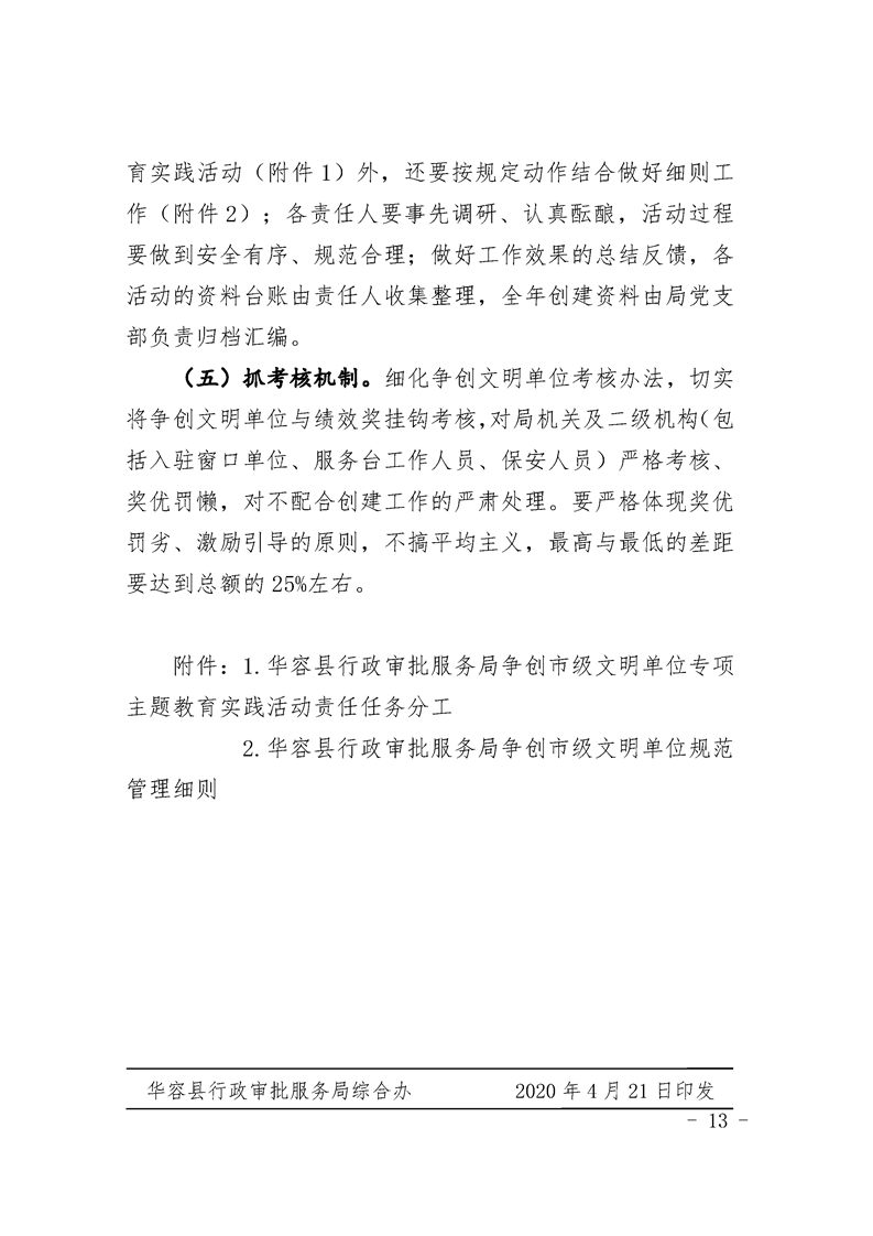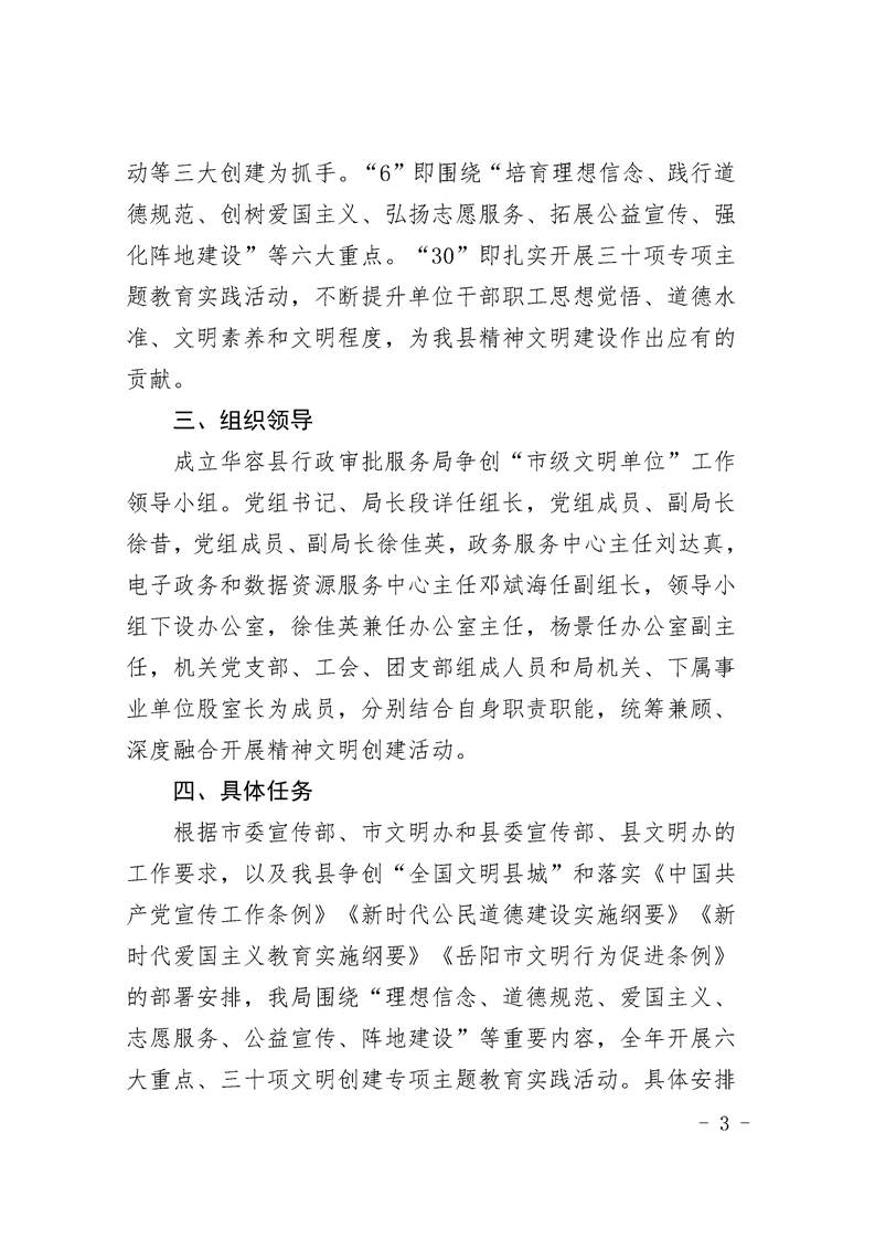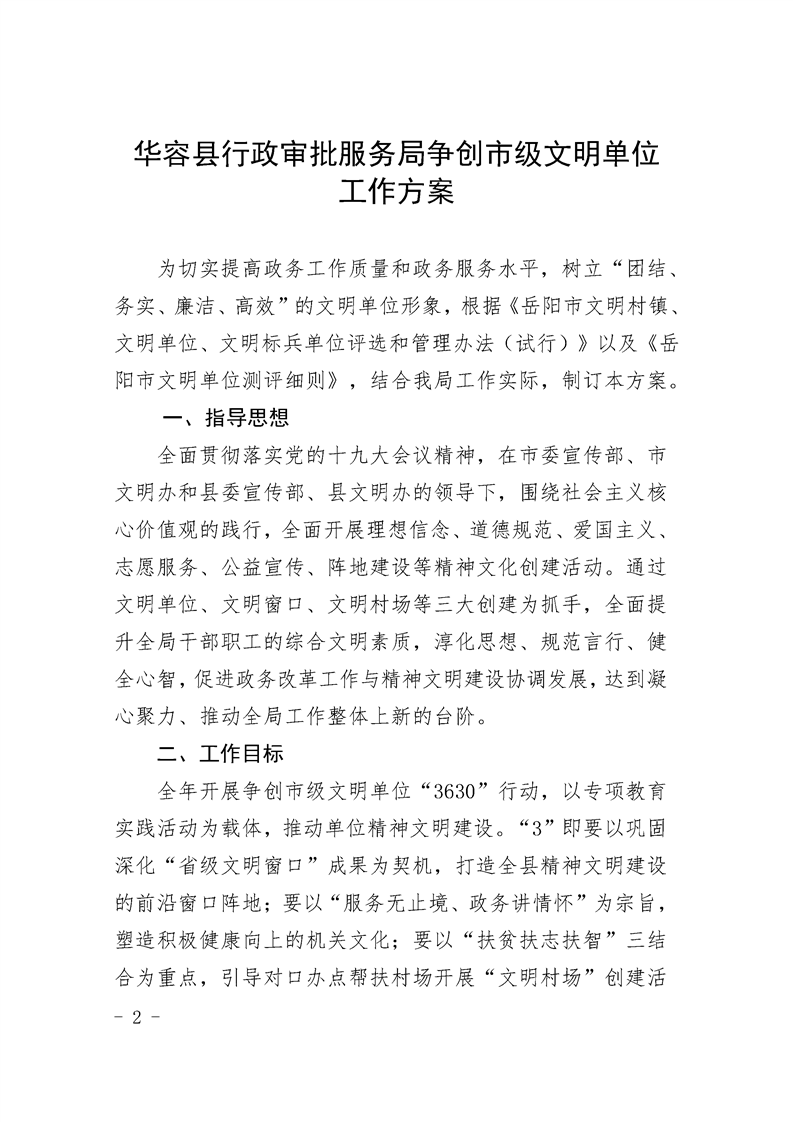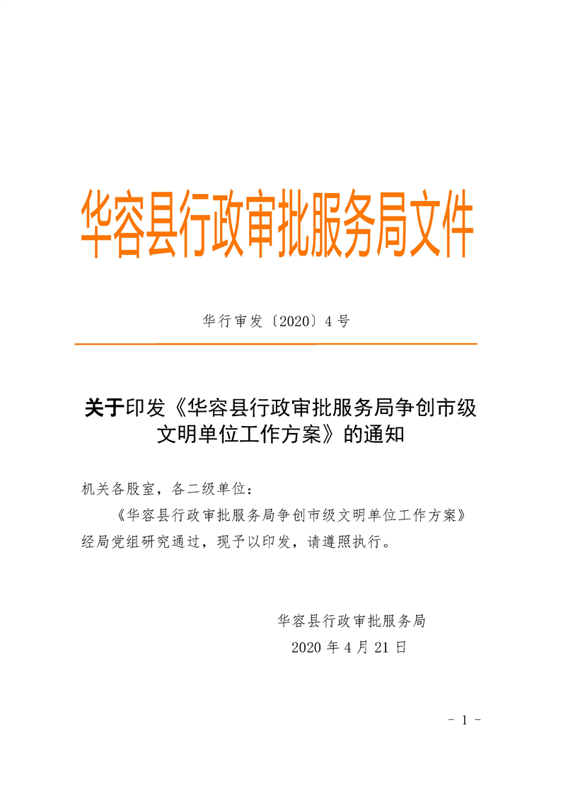 关于印发《华容县行政审批服务局争创市级文明单位工作方案》的通知