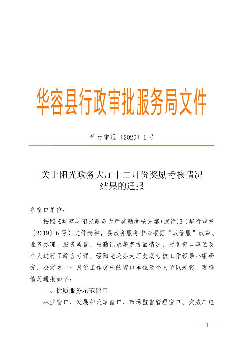 关于阳光政务大厅十二月份奖励考核情况 结果的通报