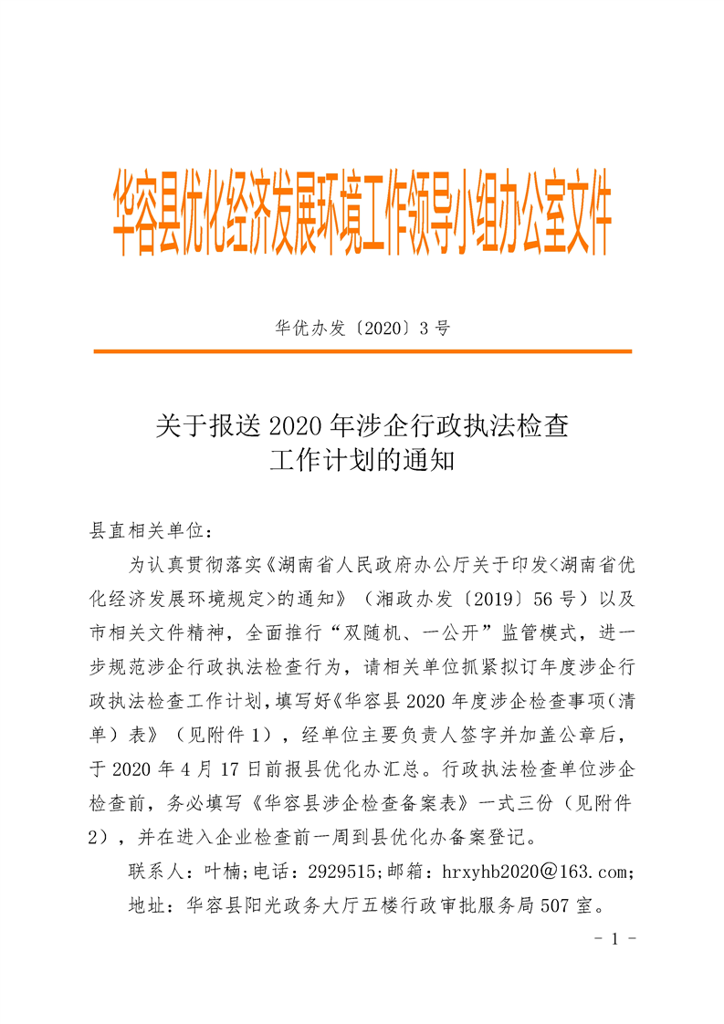 关于报送2020年涉企行政执法检查 工作计划的通知