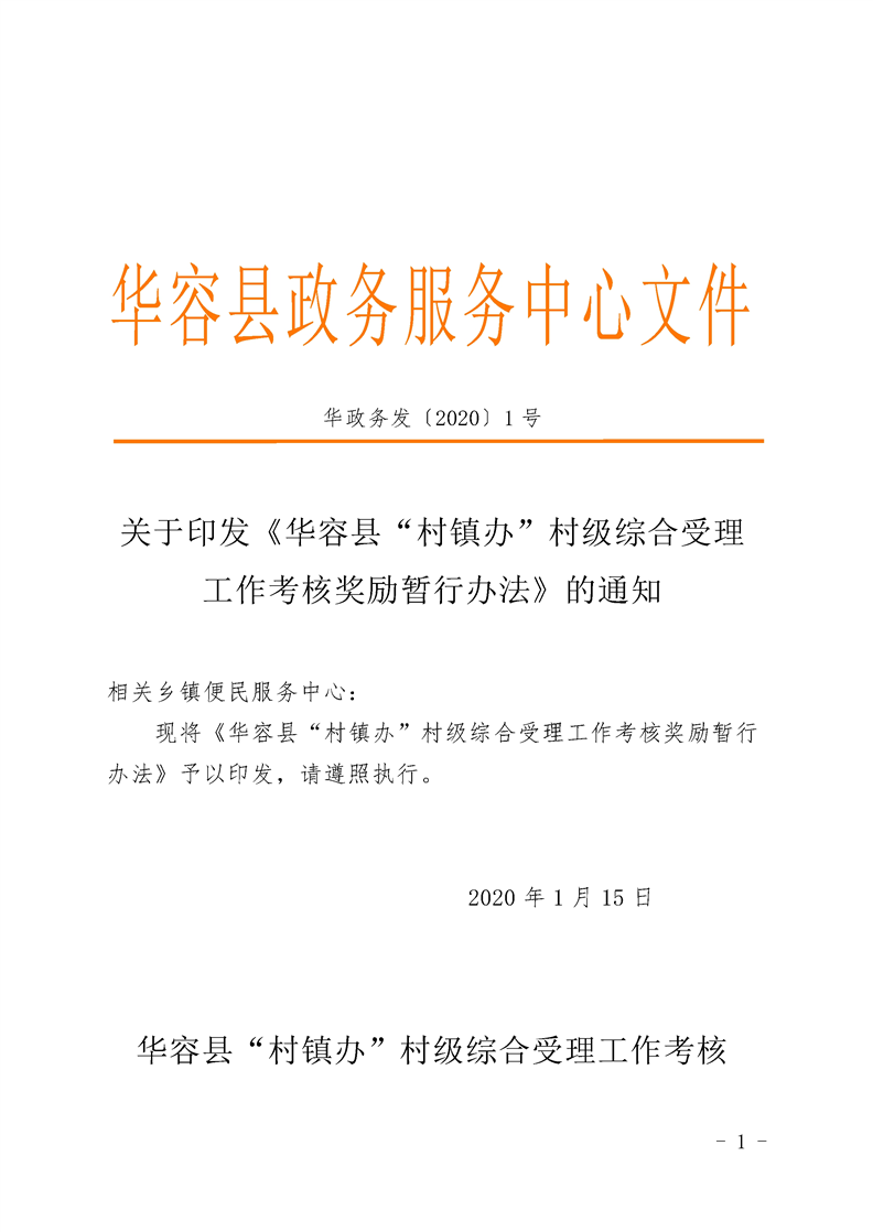 关于印发《华容县“村镇办”村级综合受理 工作考核奖励暂行办法》的通知