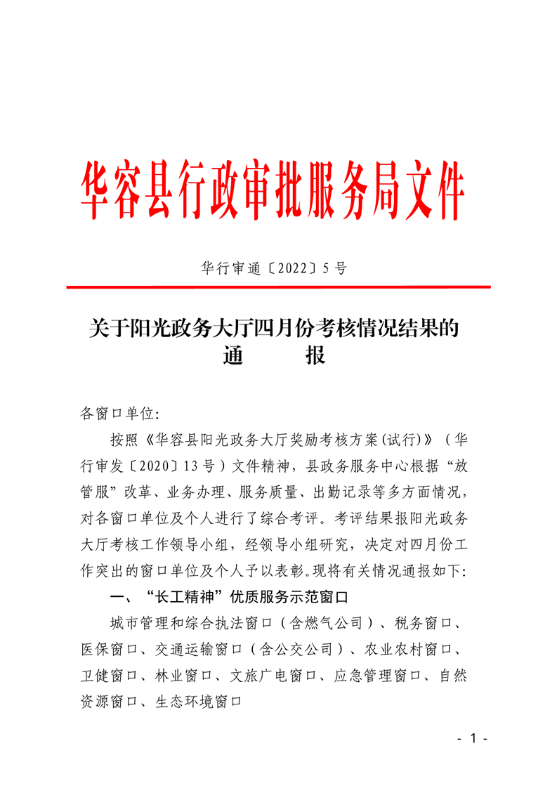 关于阳光政务大厅四月份考核情况结果的通报
