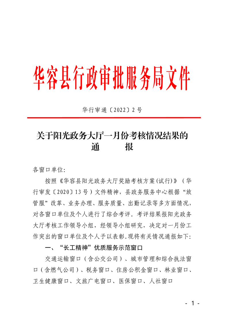 关于阳光政务大厅一月份考核情况结果的通报