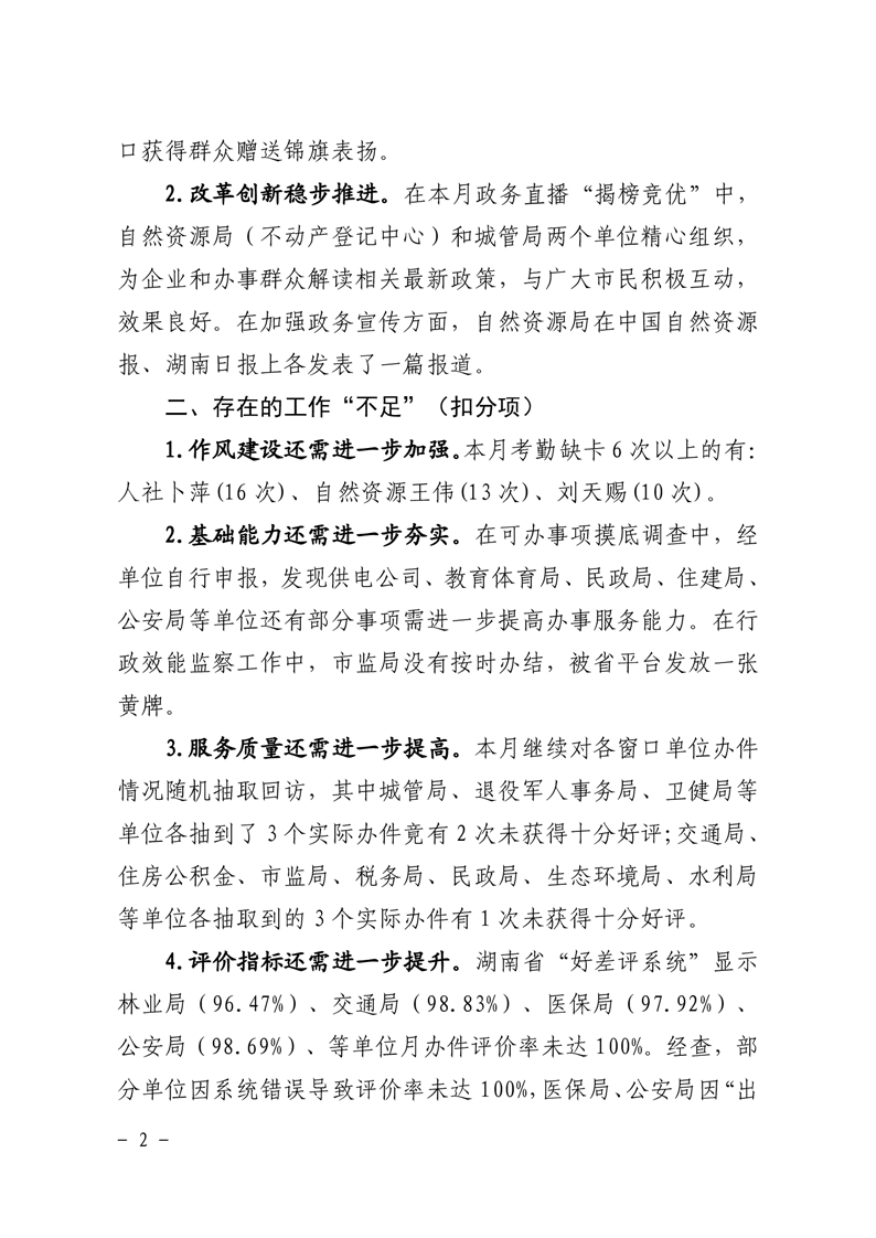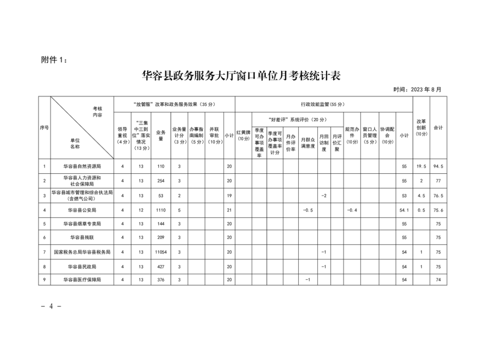 2023年关于政务服务大厅八月份绩效考核情况的通报