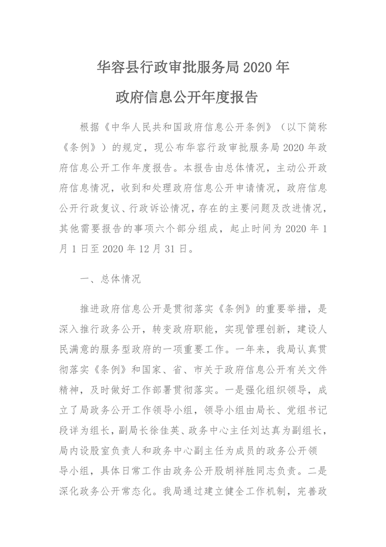 华容县行政审批服务局2020年政府信息公开工作年度报告
