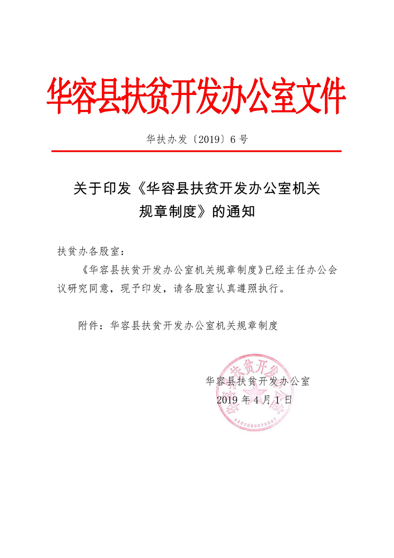华扶办发〔2019〕6号关于印发《华容县扶贫开发办公室机关规章制度》的通知