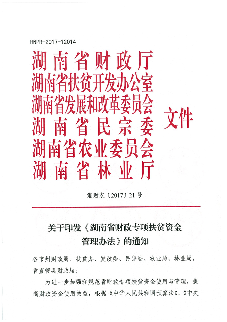 关于印发《湖南省财政专项扶贫资金管理办法》的通知