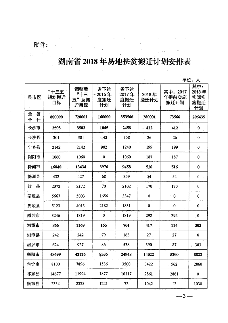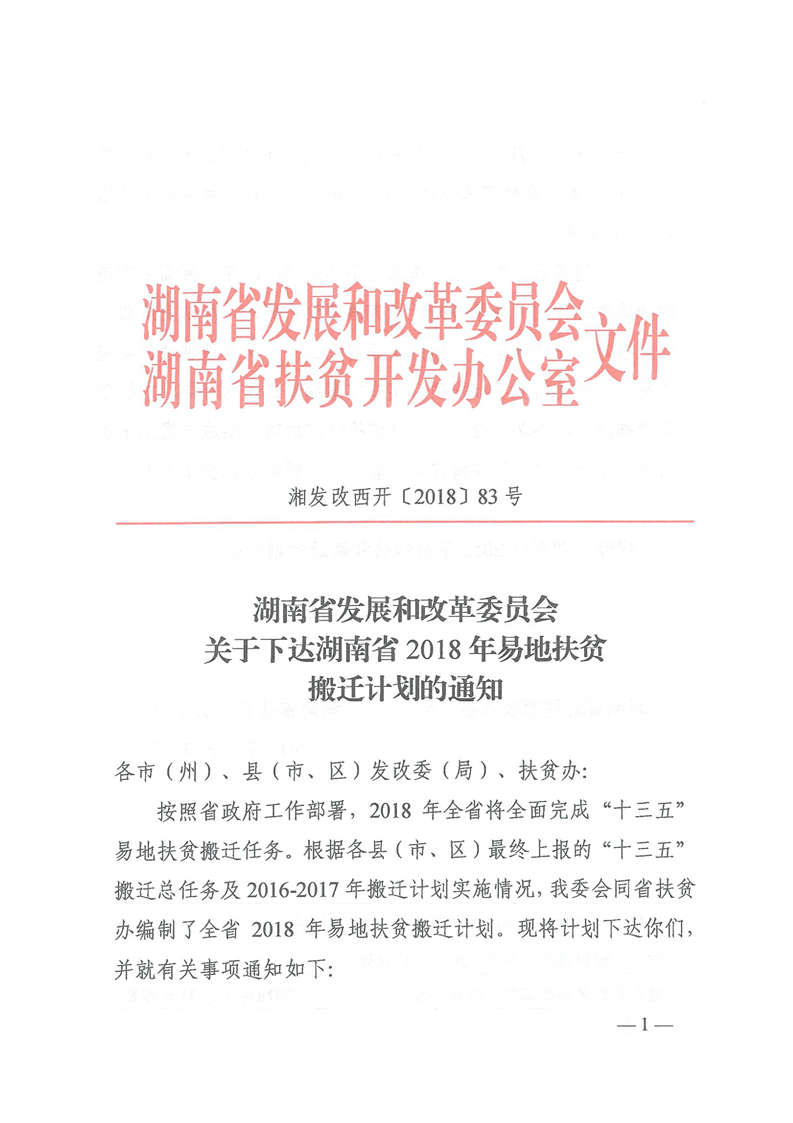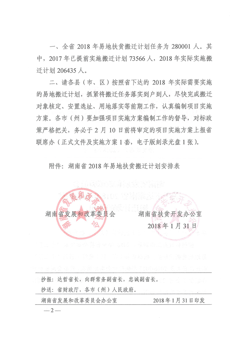 湖南省发展和改革委员会关于下达湖南省2018年易地扶贫搬迁计划的通知