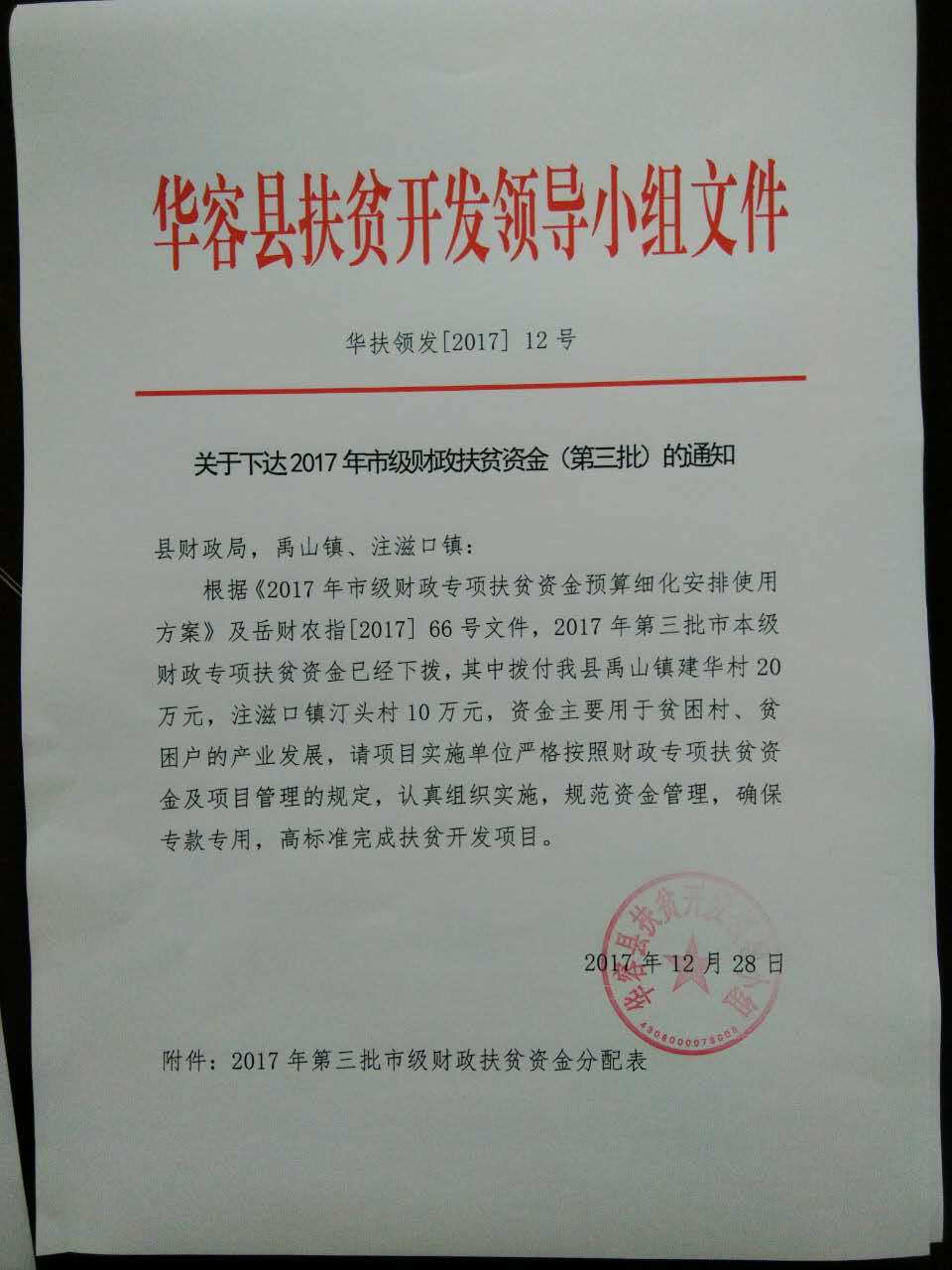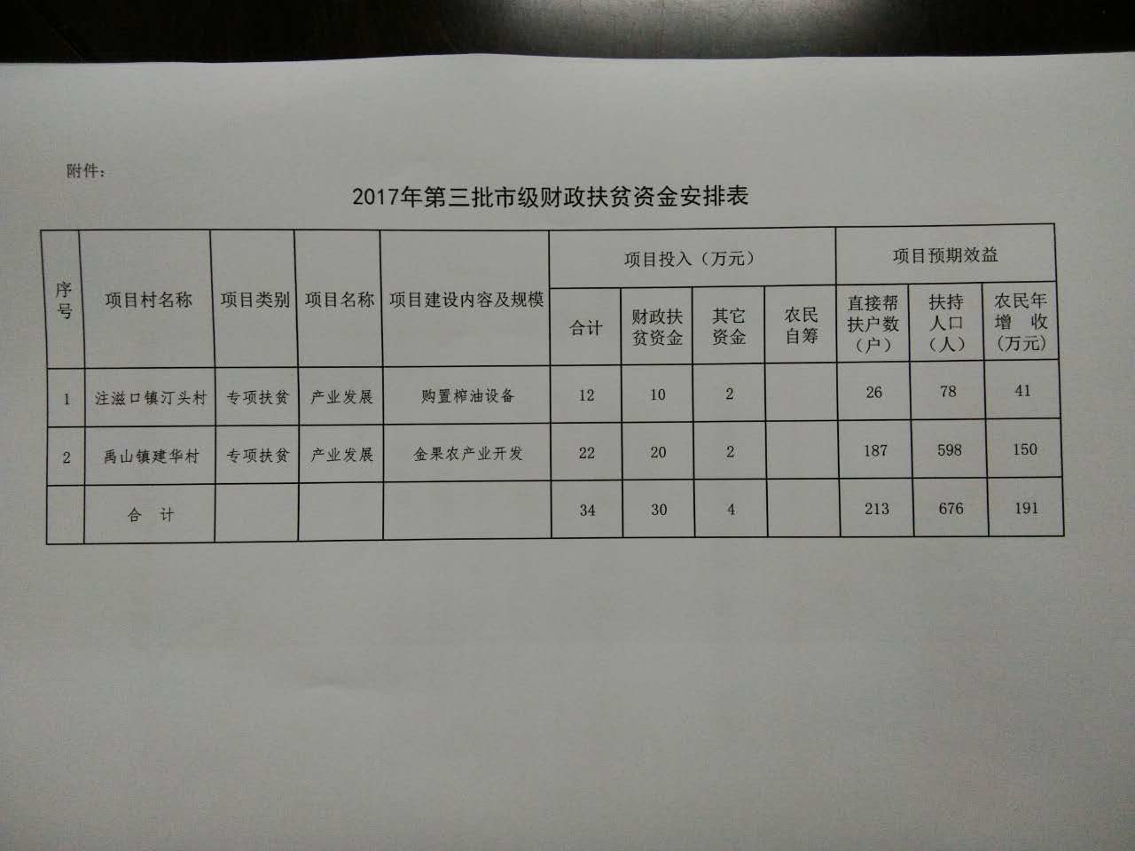 关于下达2017年市级财政扶贫资金(第三批)的通知