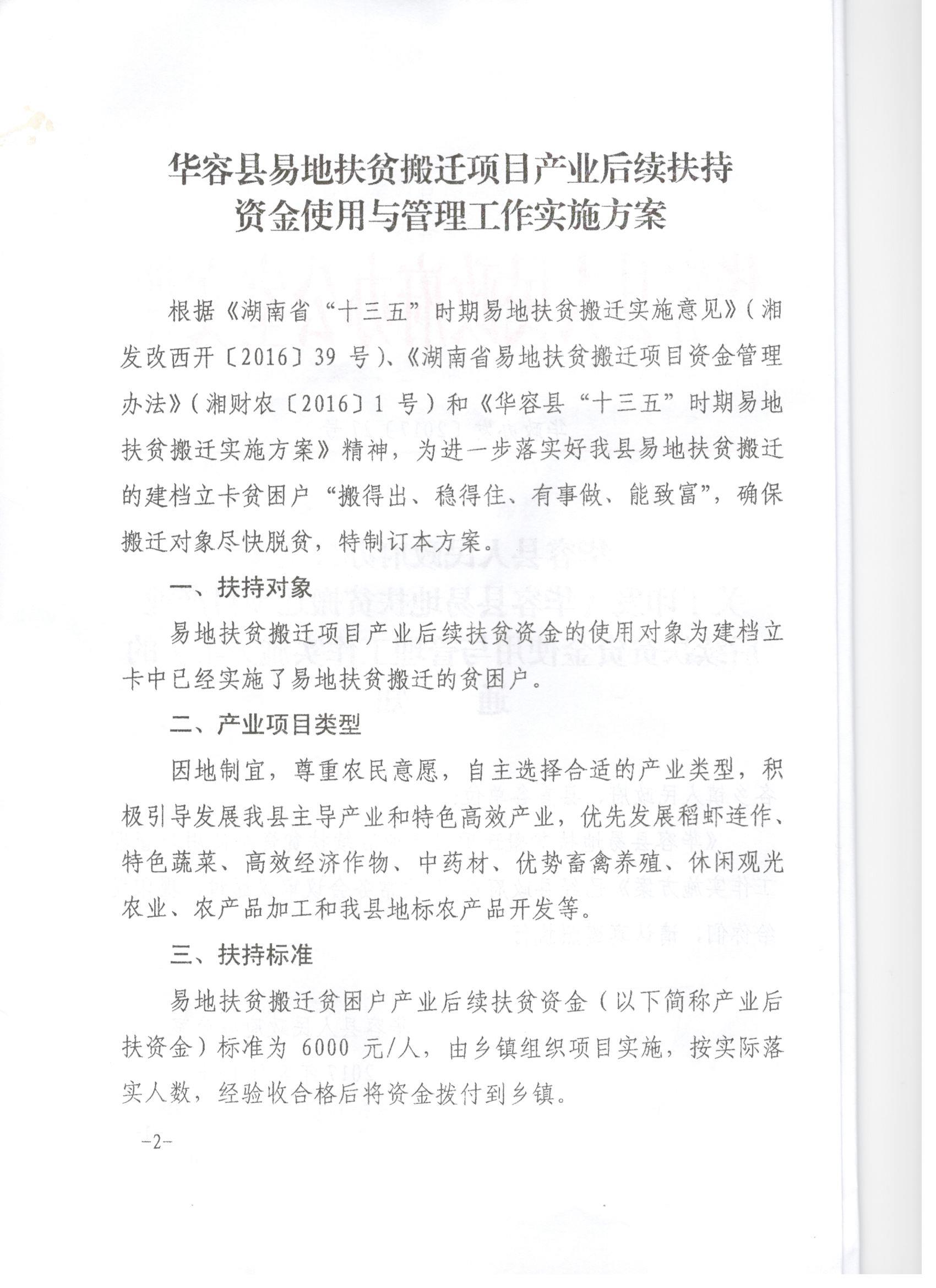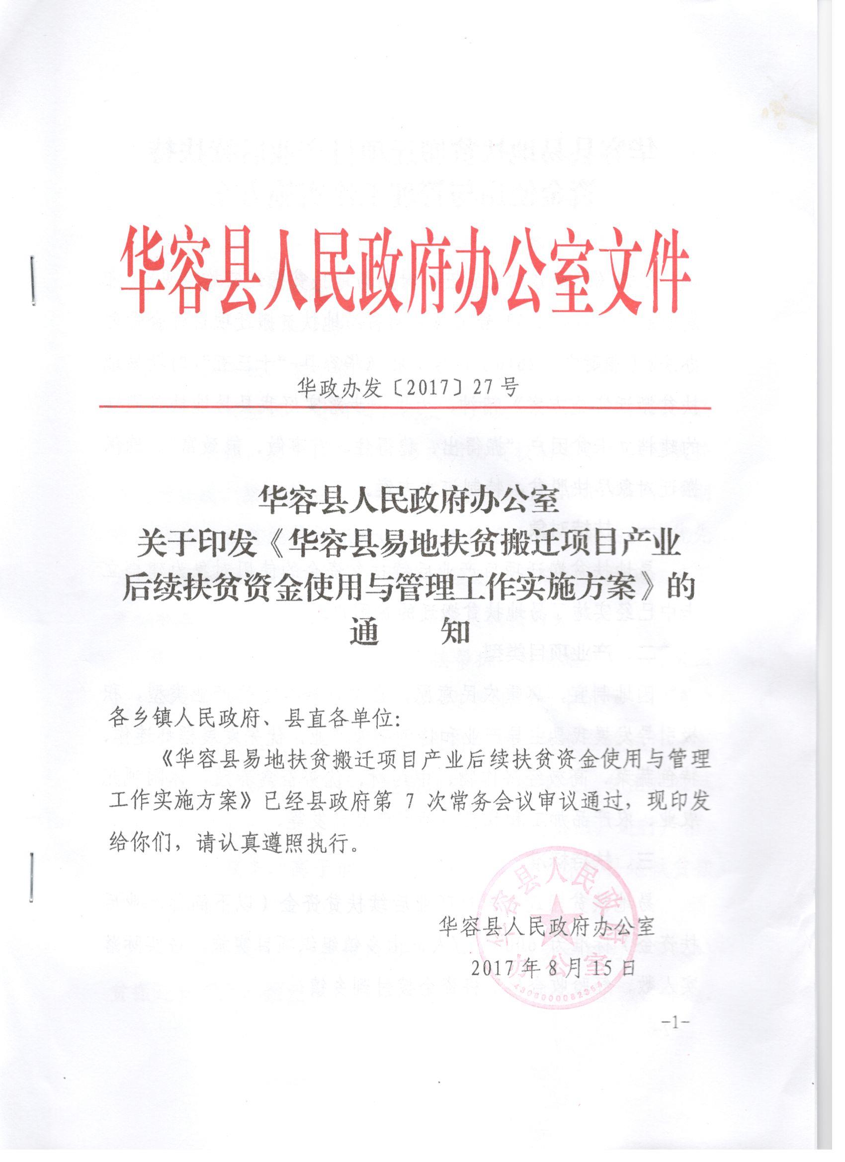 华容县人民政府办公室关于印发《华容县易地扶贫搬迁项目产业后续扶贫资金使用与管理工作实施方案》的通知