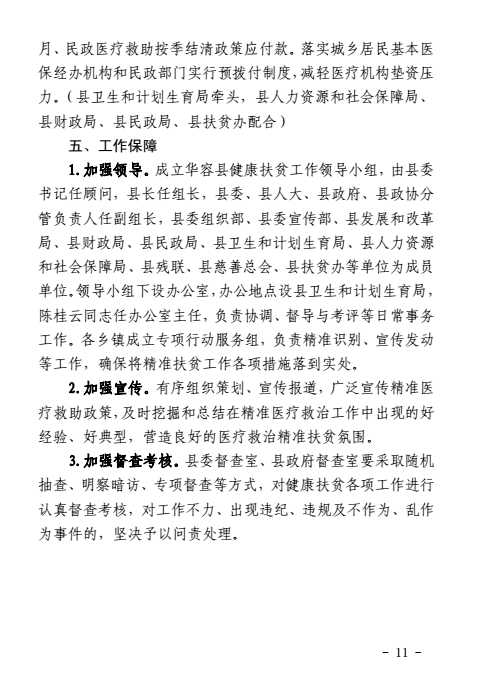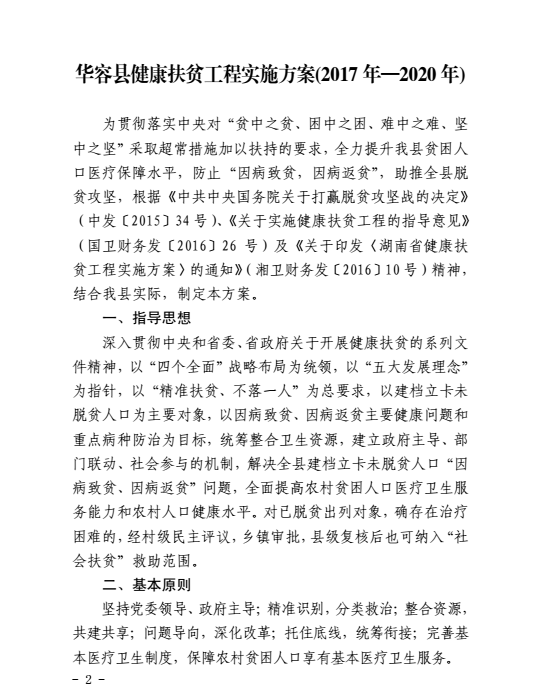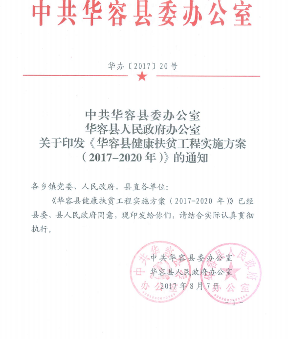 关于印发《华容县健康扶贫工程实施方案(2017-2020年)》的通知