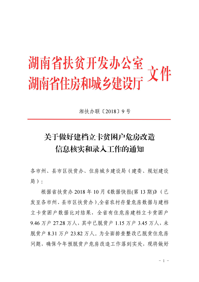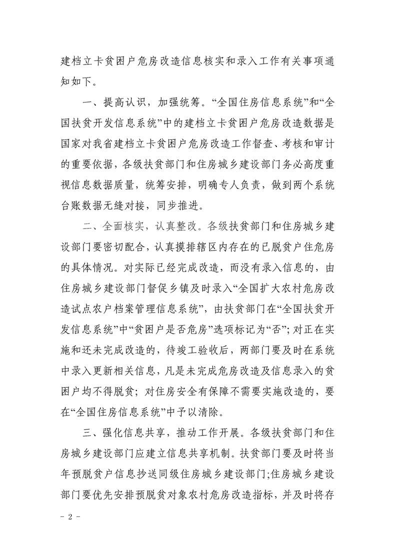 关于做好建档立卡贫困户危房改造信息核实和录入工作的通知