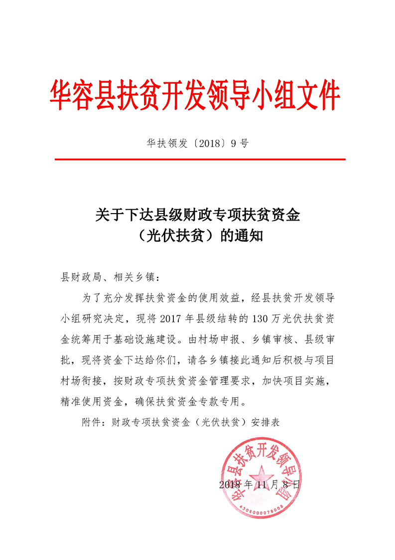 关于下达县级财政专项扶贫资金的通知