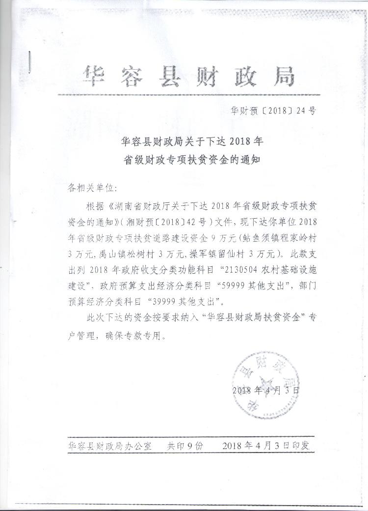 华容县财政局关于下达2018年省级财政专项扶贫资金的通知