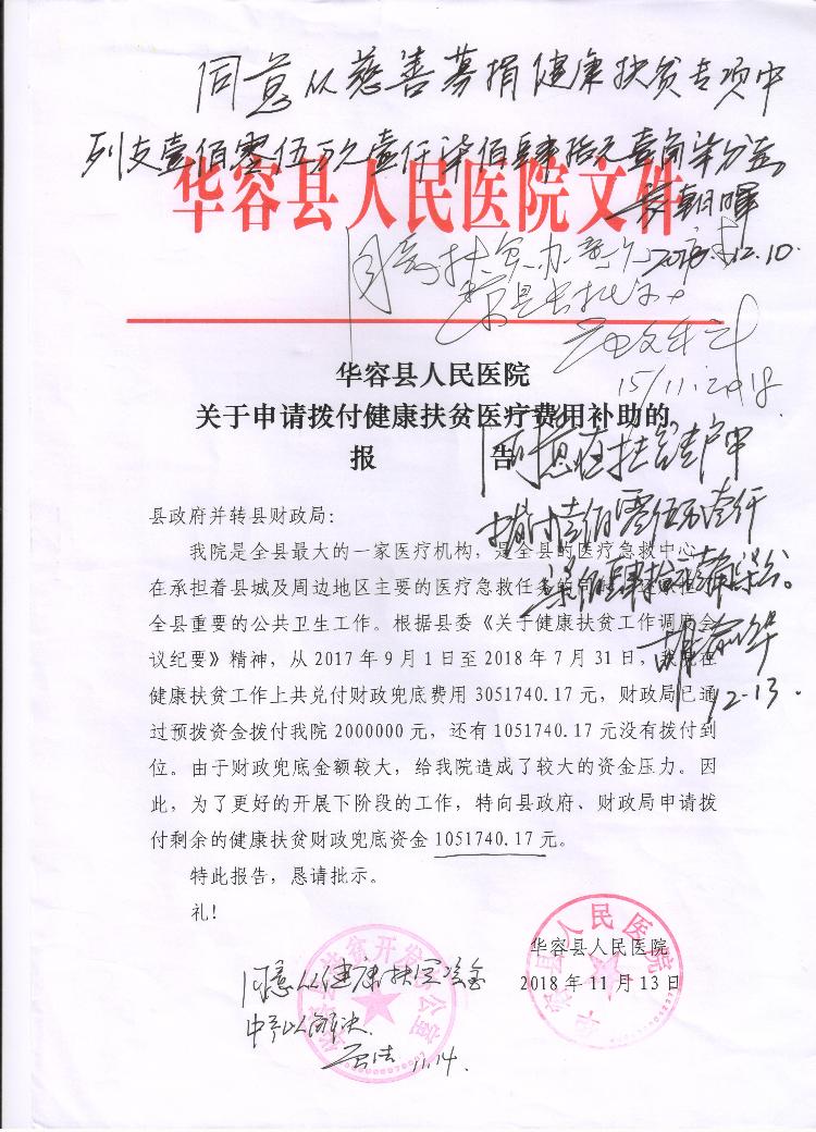 华容县2018年健康扶贫资金安排表(105.174万元)