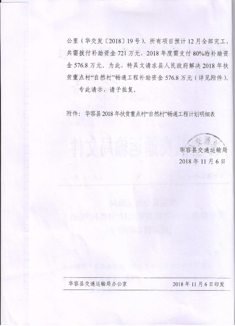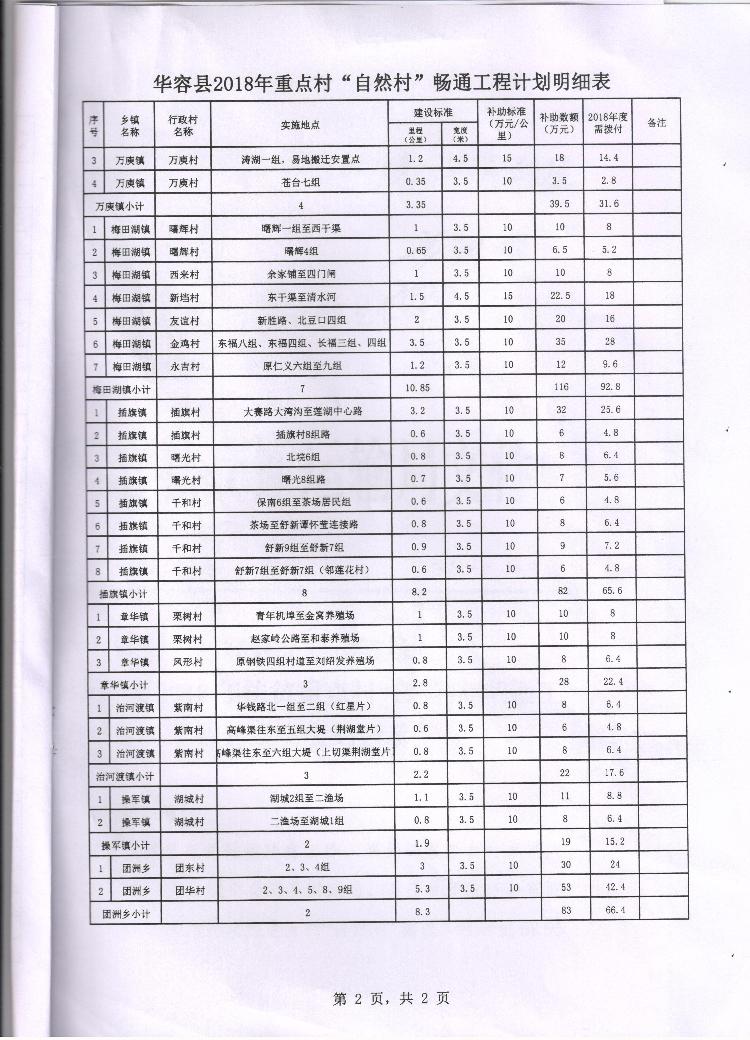 华容县2018年扶贫重点村“自然村”畅通工程建设资金安排表(576.8万元)
