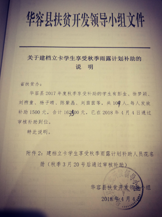 华容县扶贫办关于建档立卡学生享受2017年秋季雨露计划补助资金安排(16.35万元)