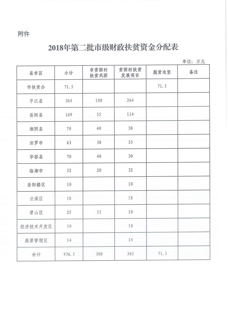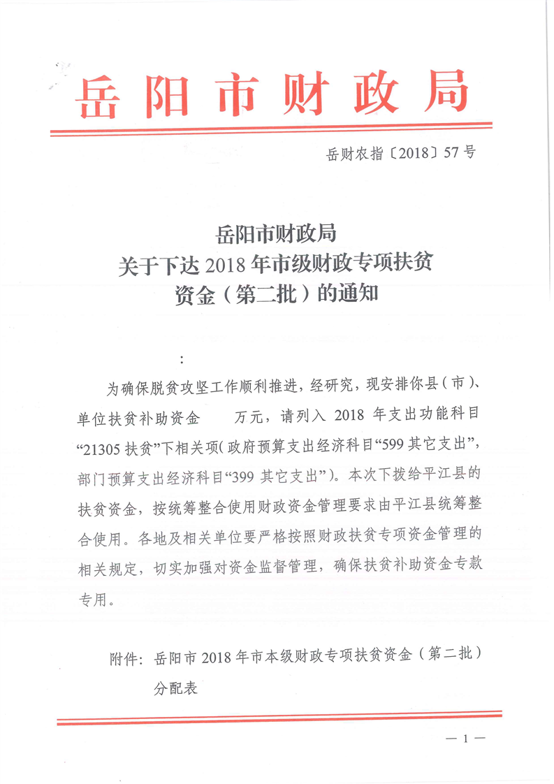 关于下达2018年市级财政专项扶贫资金(第二批)的通知