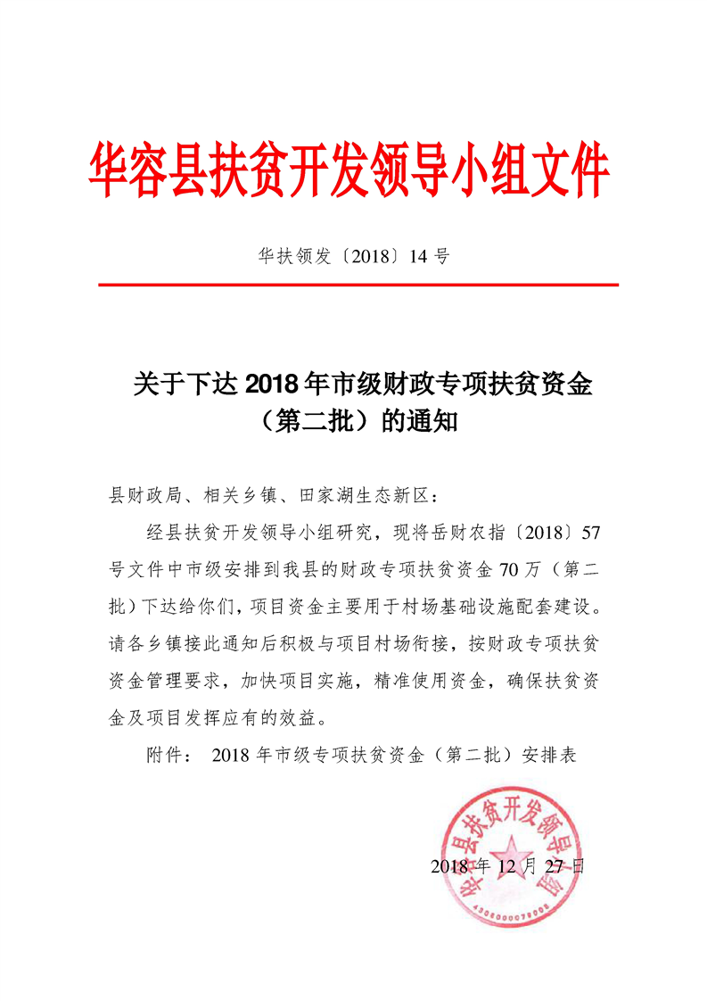华容县关于下达2018年市级财政专项资金(第二批)的通知(70万元)