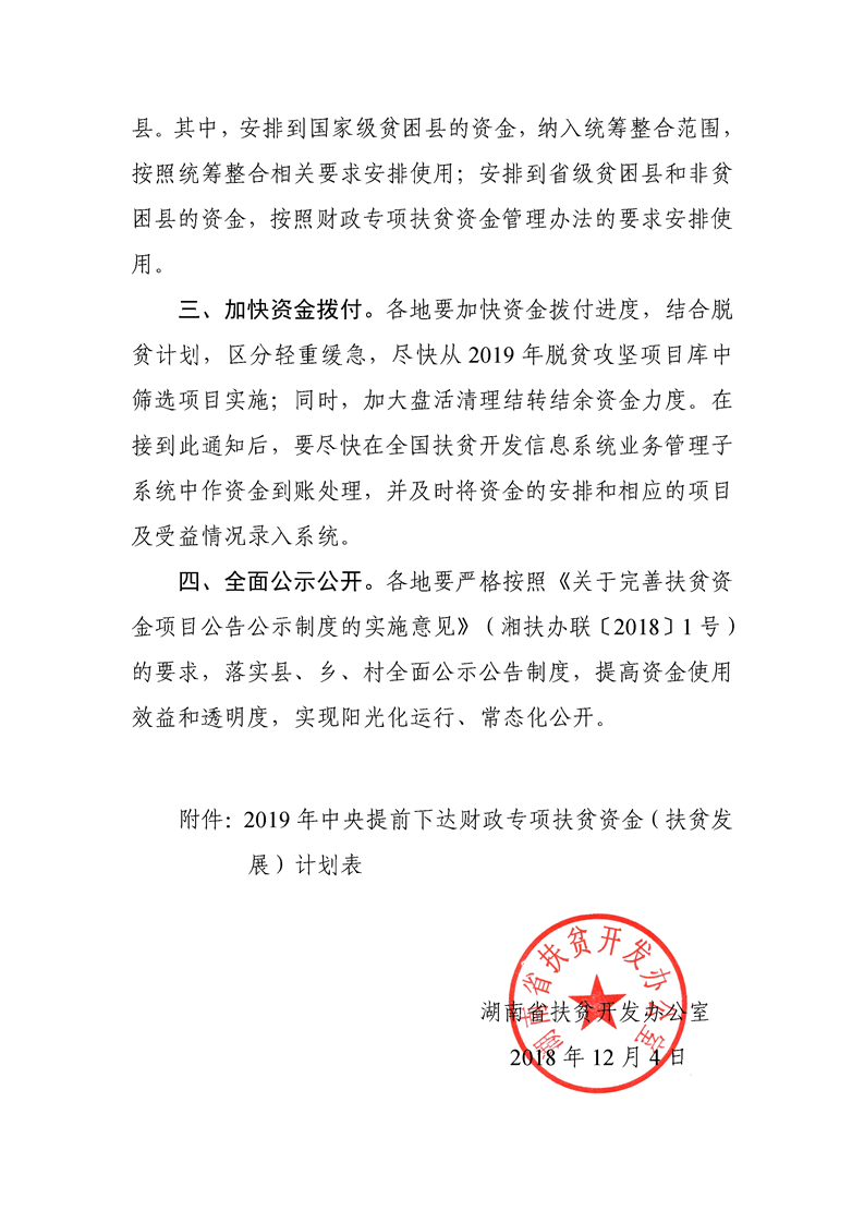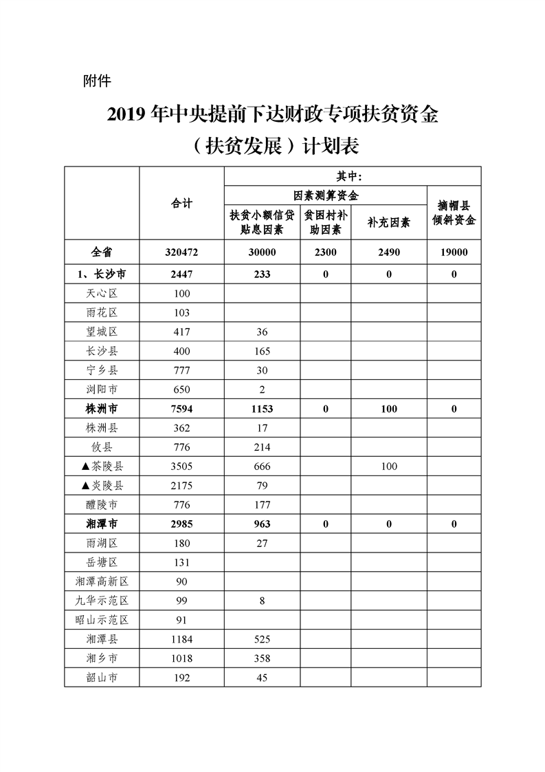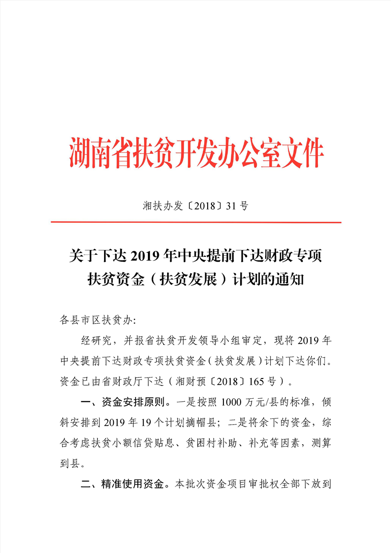 关于下达 2019 年中央提前下达财政专项扶贫资金(扶贫发展)计划的通知(626万)