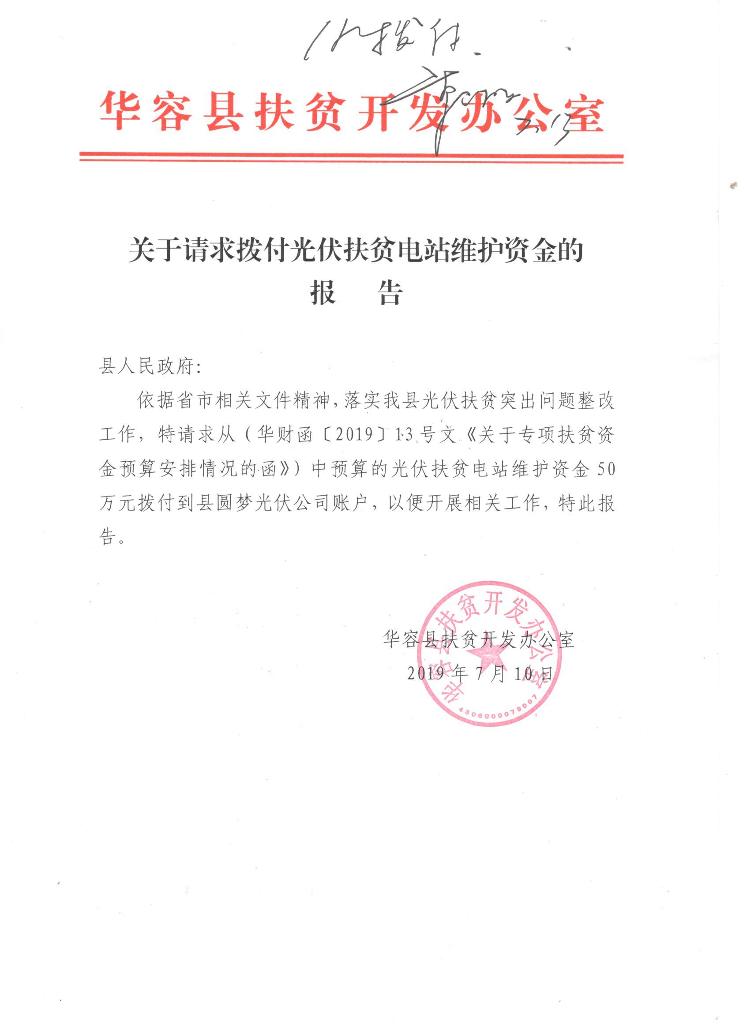 光扶扶贫电站维护资金50万(县级)