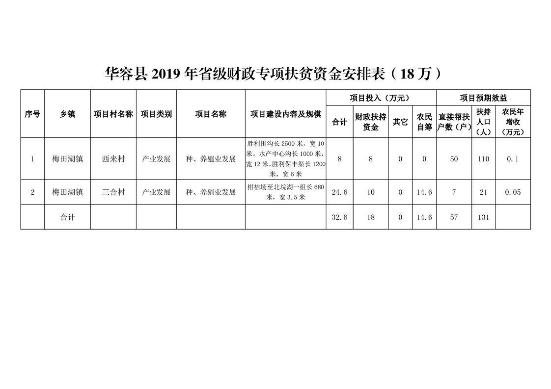 华扶领发(2019)6号:关于下达2019年省级财政专项扶贫资金的通知-梅田湖镇-18万