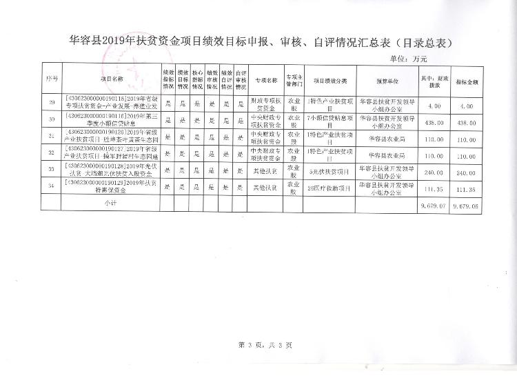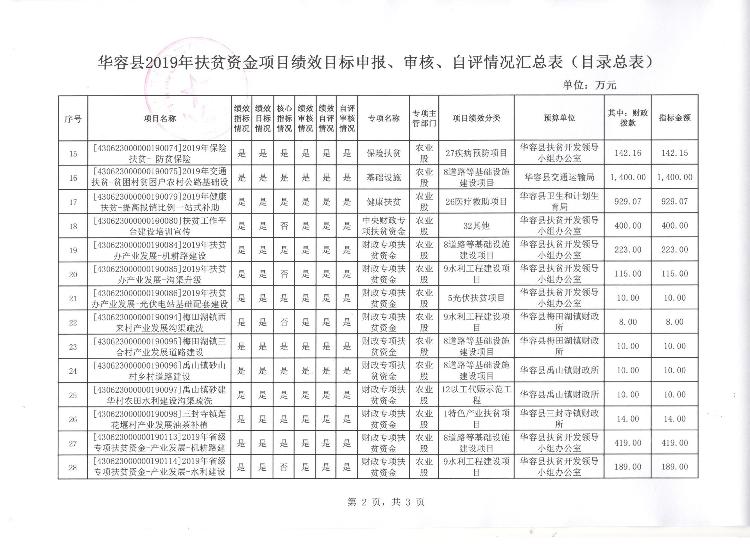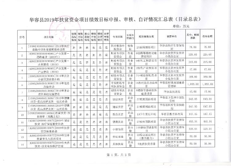 华容县2019年扶贫资金项目绩效目标申报、审核、自评情况汇总表