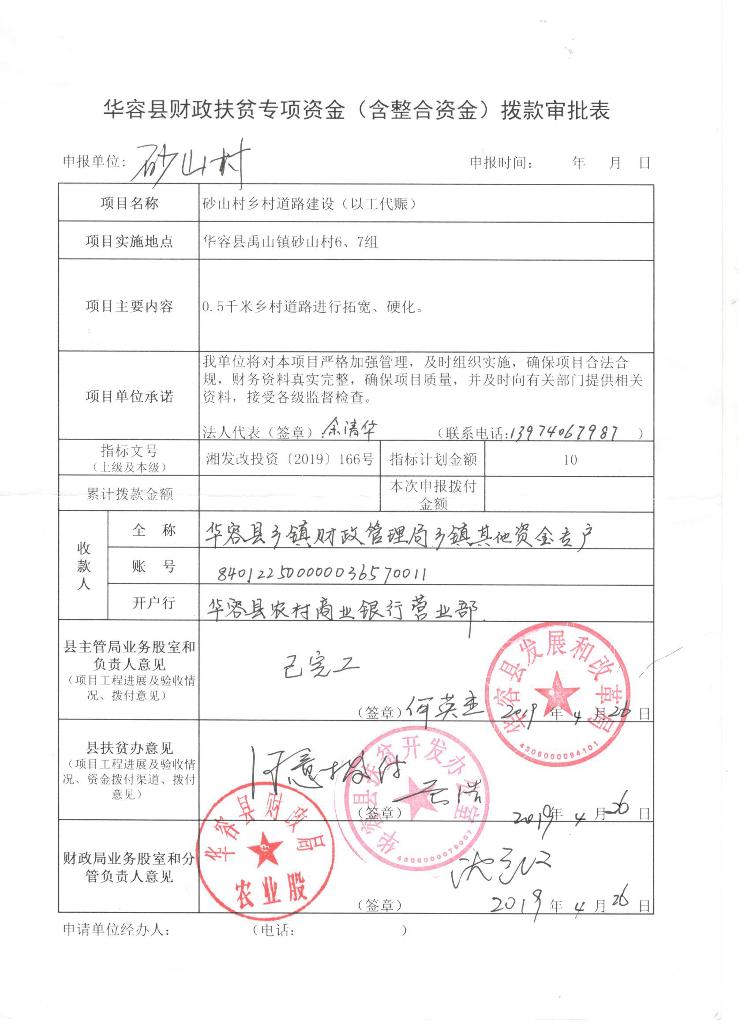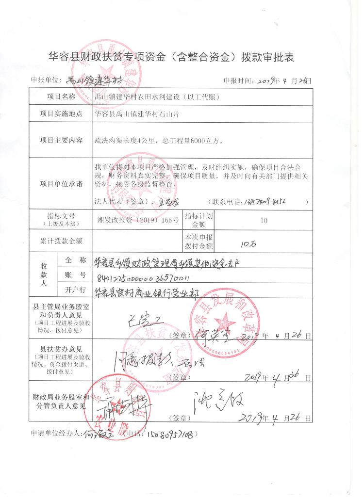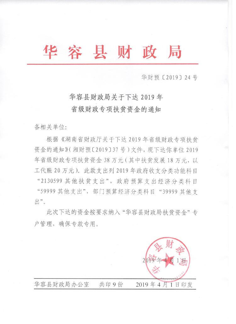 华容县财政局关于下达2019年省级财政专项扶贫资金(以工代赈)--20万元
