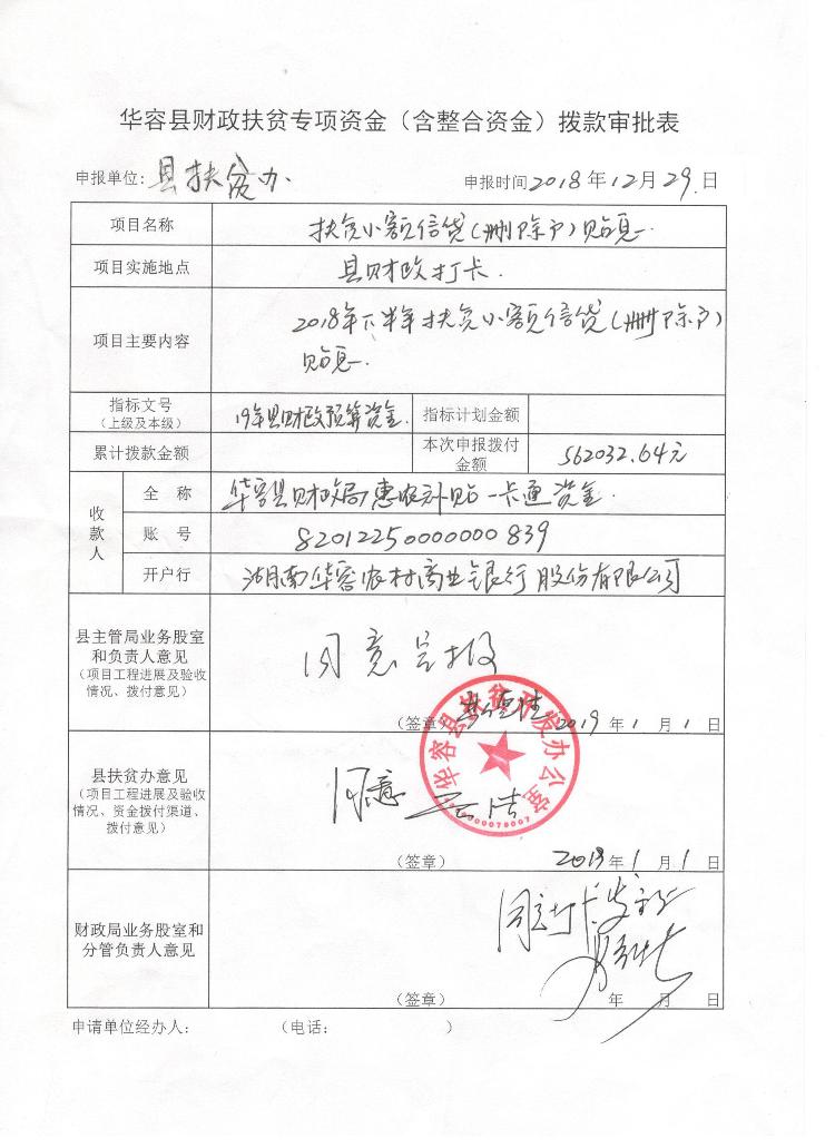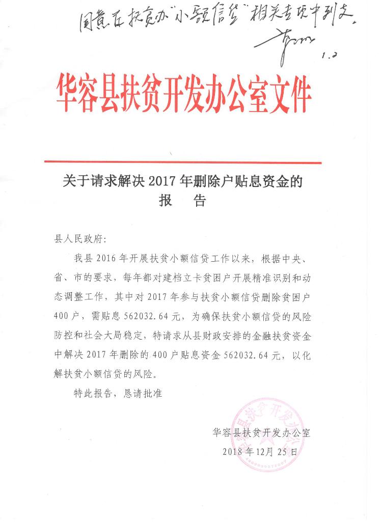 关于下拨中央扶贫资金(小额信贷贴息)的报告--56.2万