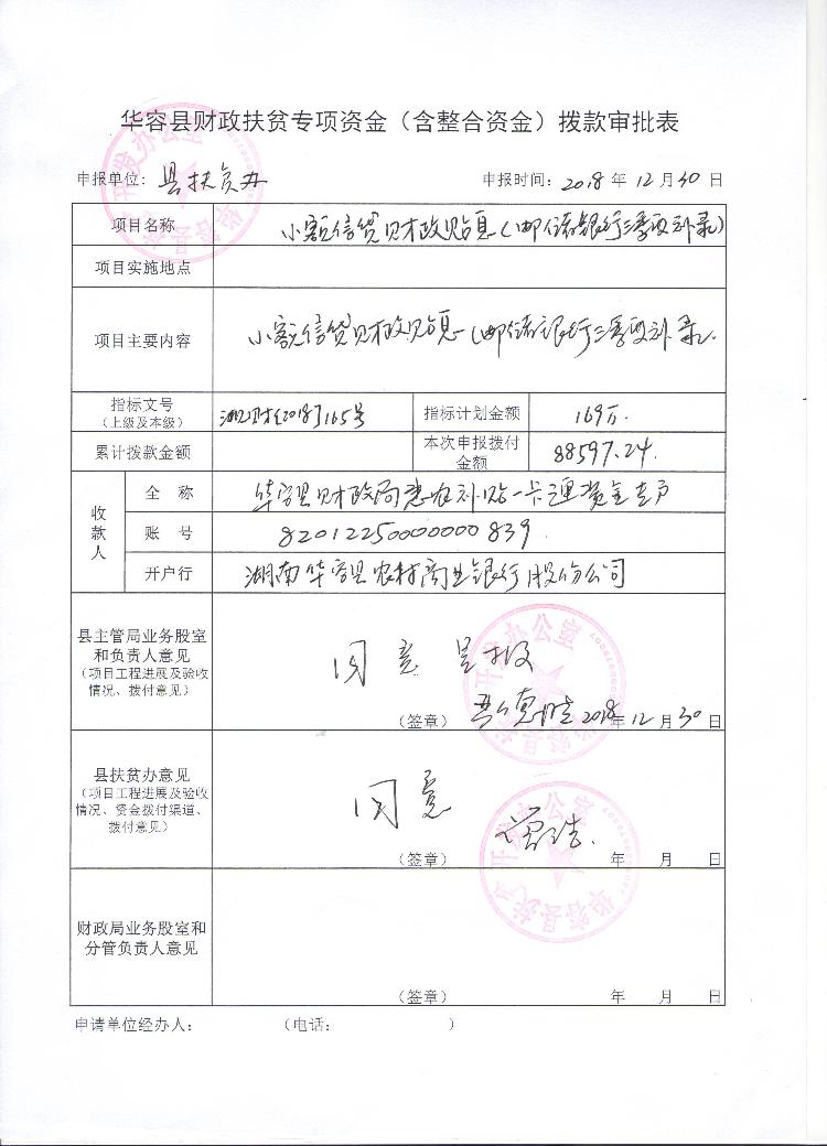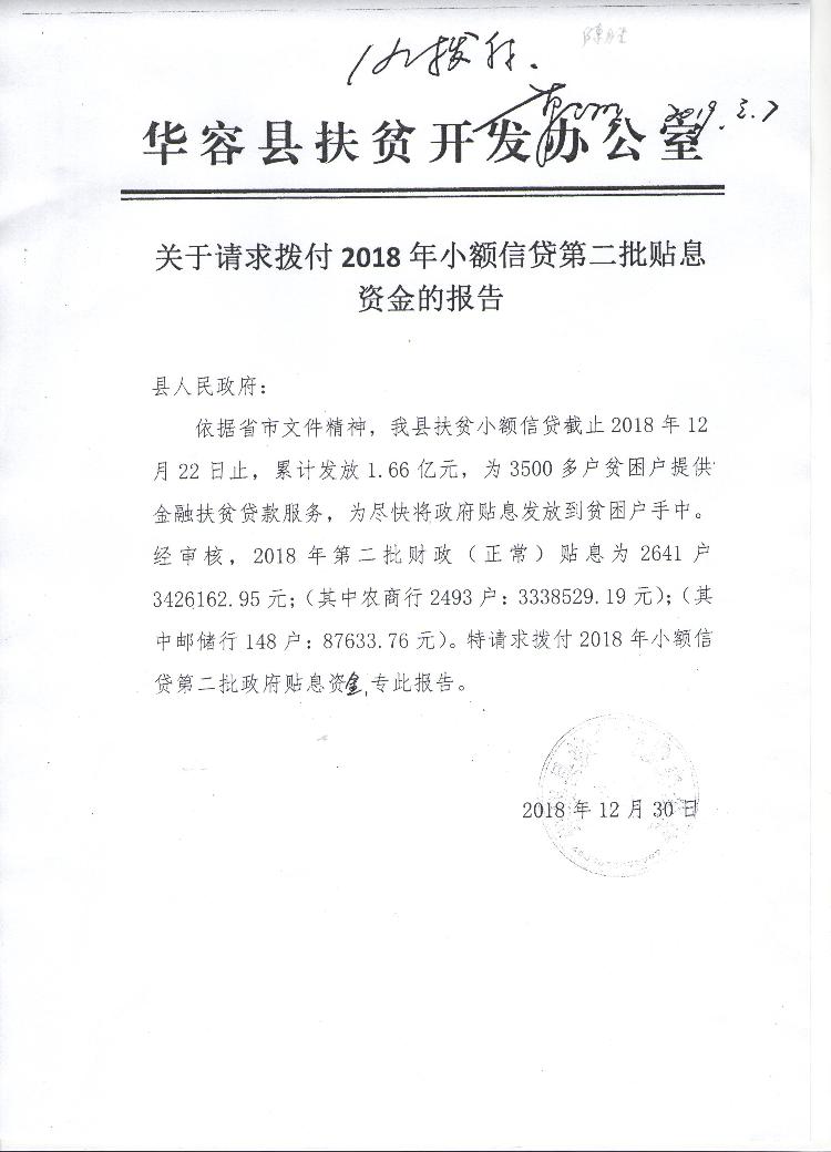 关于拨付中央扶贫资金(小额信贷贴息)的报告--50.63万
