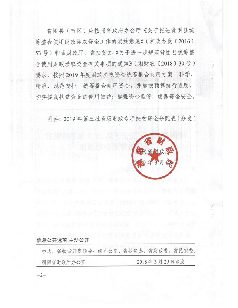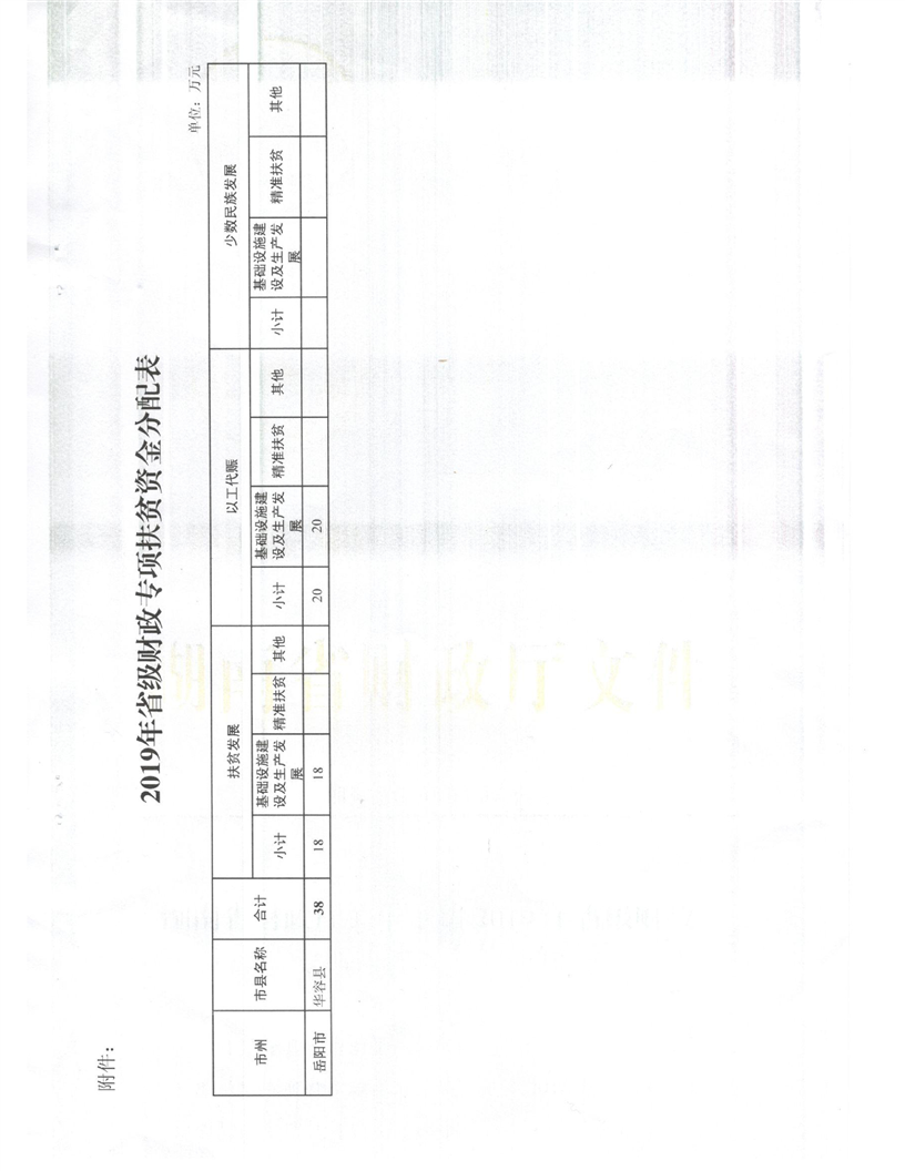 湘财预[2019]37号:[湖南省财政厅关于下达2019年省级财政专项扶贫资金的通知](38万元)