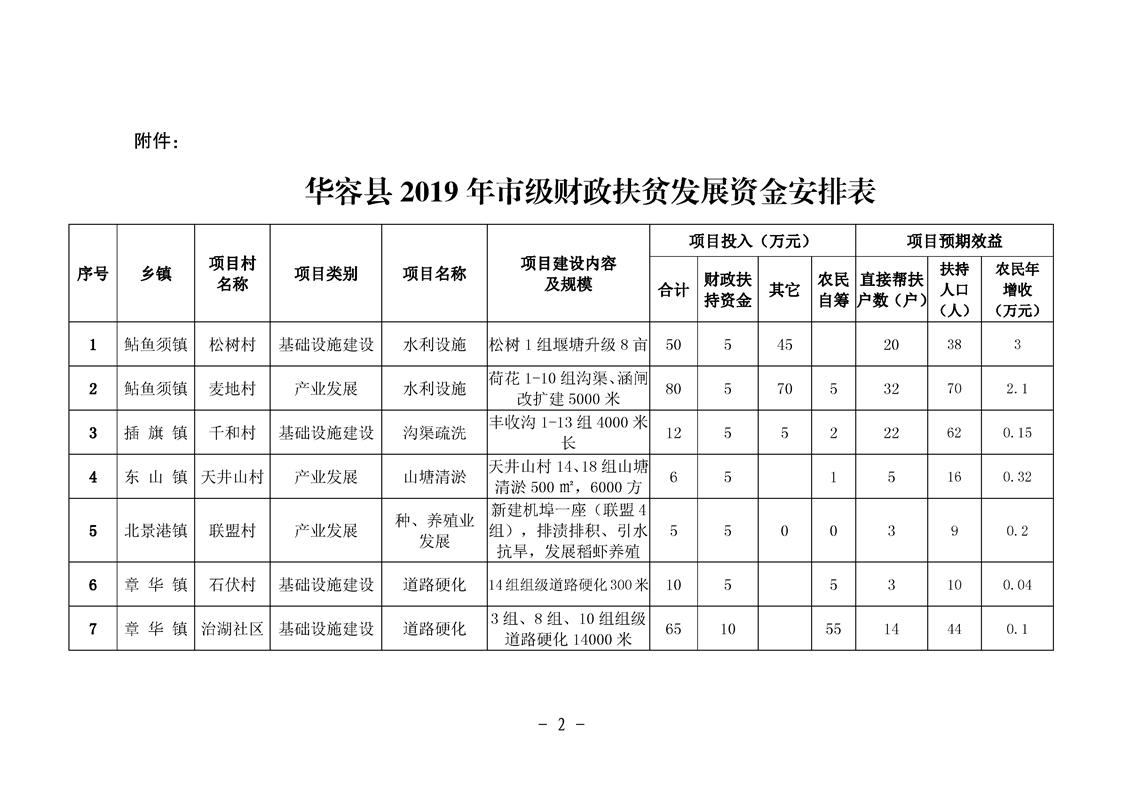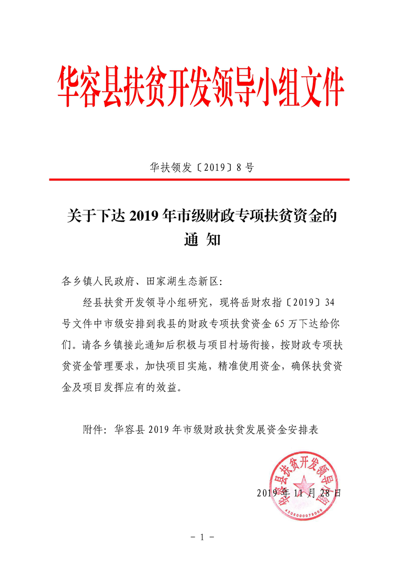华扶领发(2019)8号-关于下达2019年市级财政专项扶贫资金--65万
