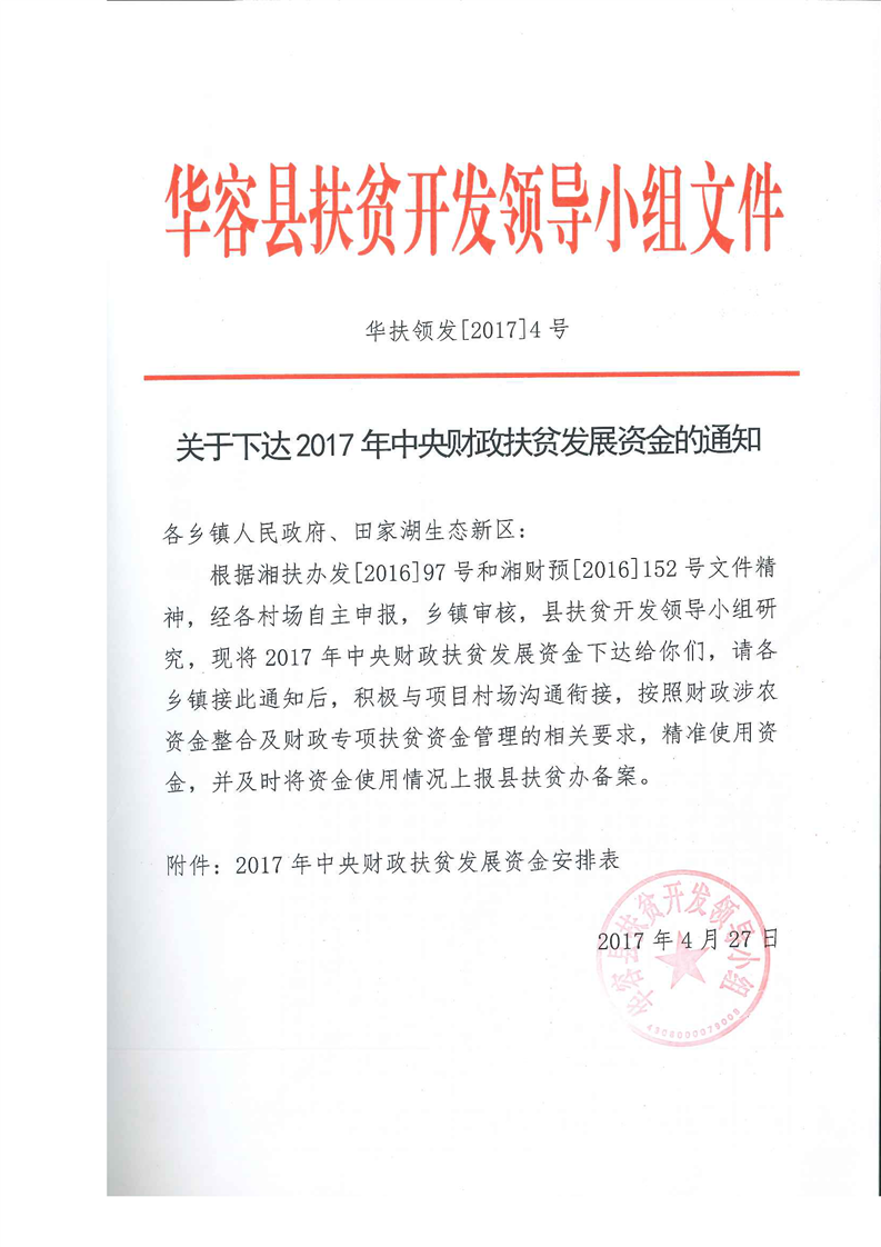 关于下达2017年中央财政扶贫发展资金的通知-504万