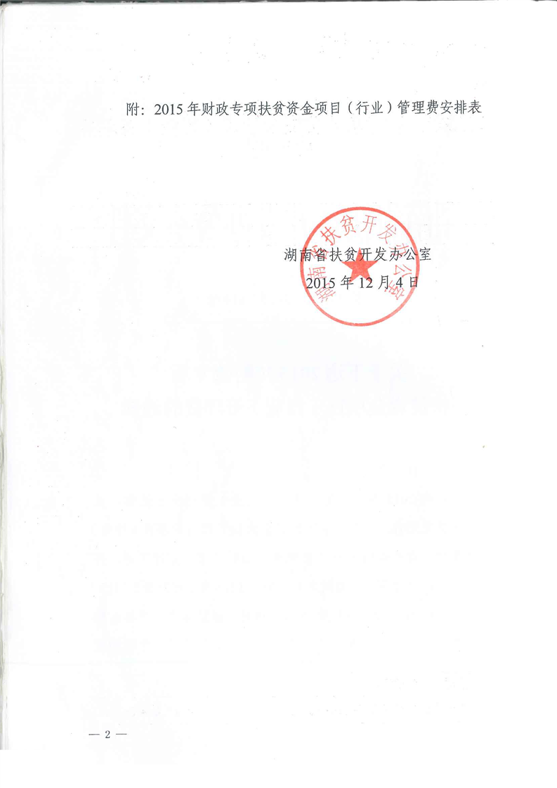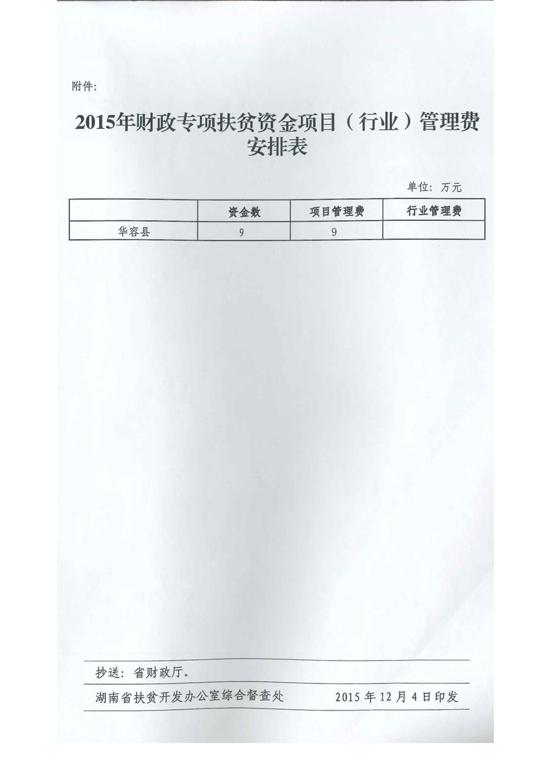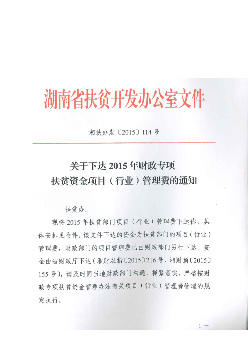 湘扶办发(2015)114号-关于下达2015年财政专项扶贫资金项目(行业)管理费的通知(9万元)