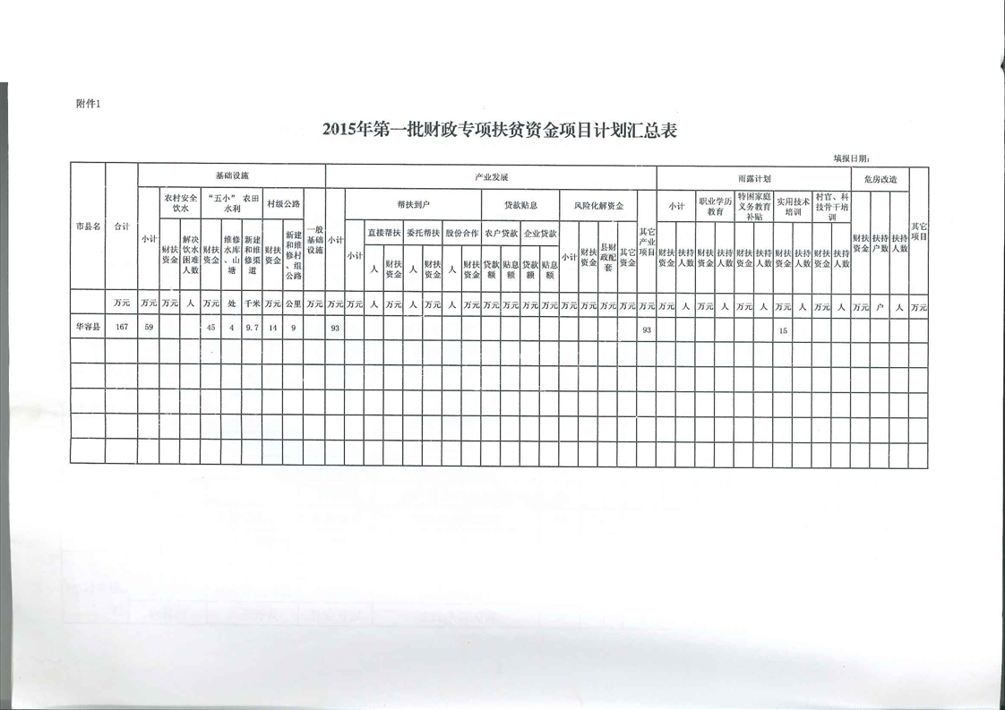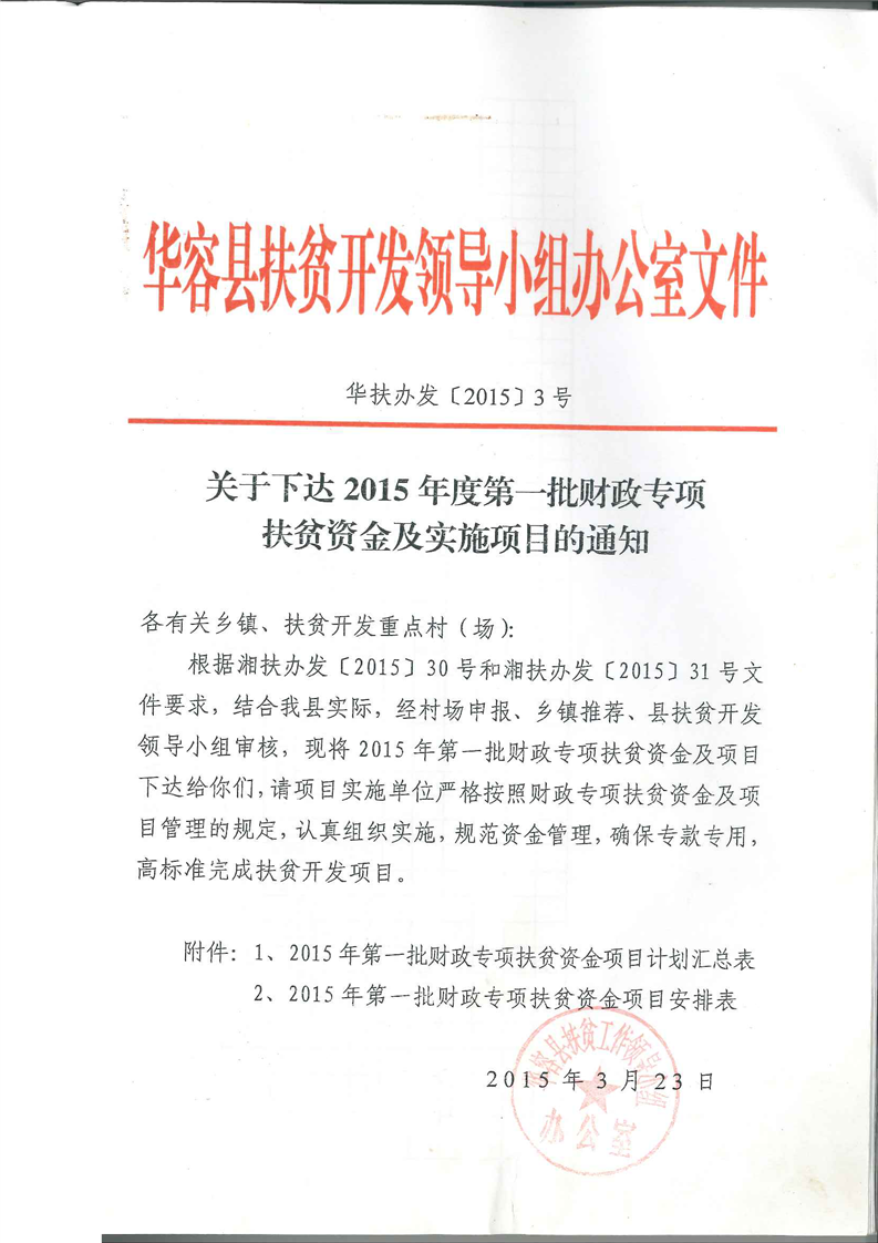 华扶办发(2015)3号-关于下达2015年度第一批财政专项扶贫资金及实施项目的通知(167万元)